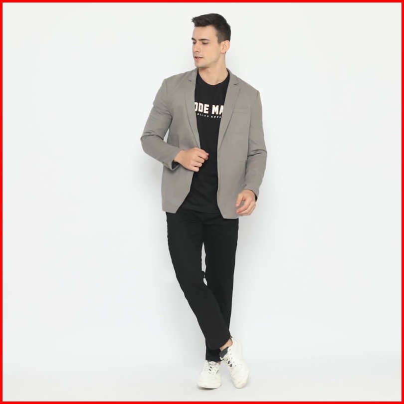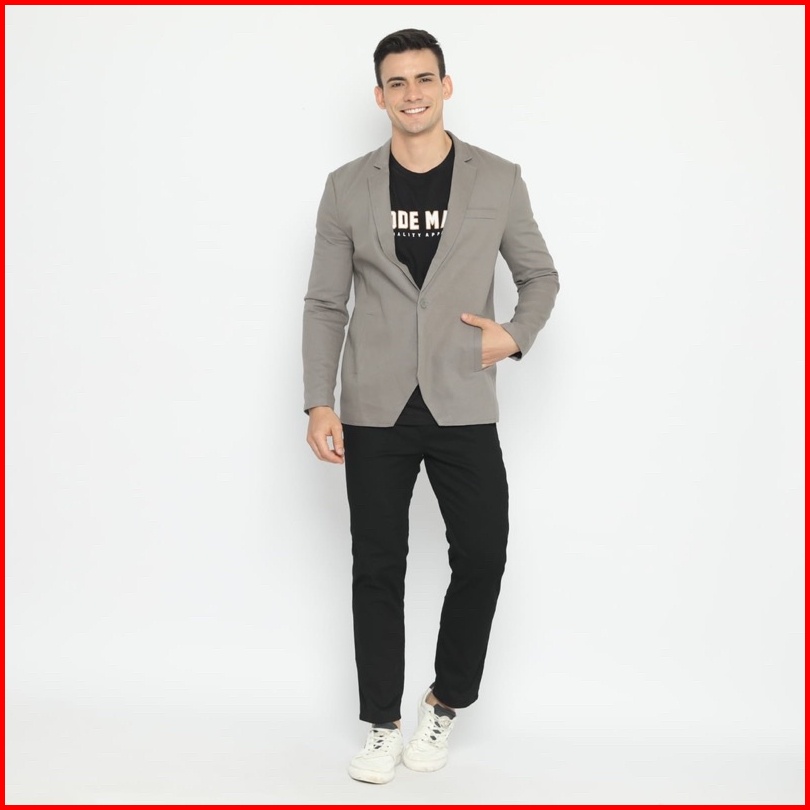 Code Male- Lexus Jas Blazer Casual Cotton Pria Slimfit Abu Lite Kancing 1