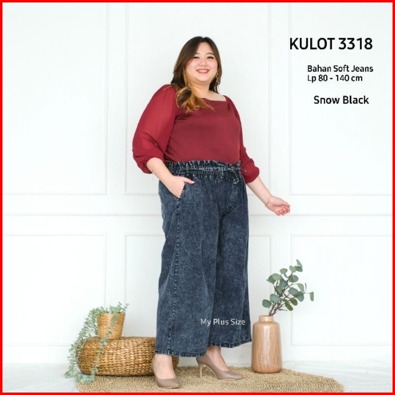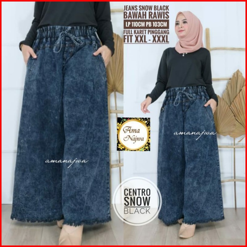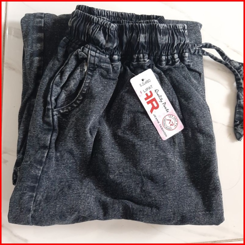 Kulot Jumbo Celana Jeans Jumbo Wanita Pinggang Karet Kulot Rawis Big Size Celana Jumbo