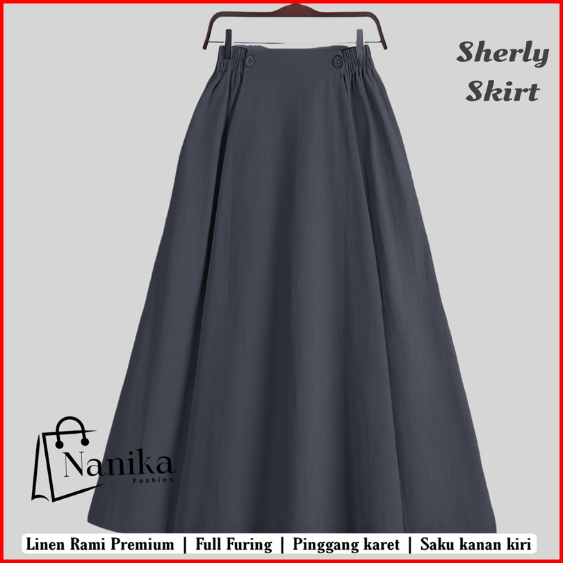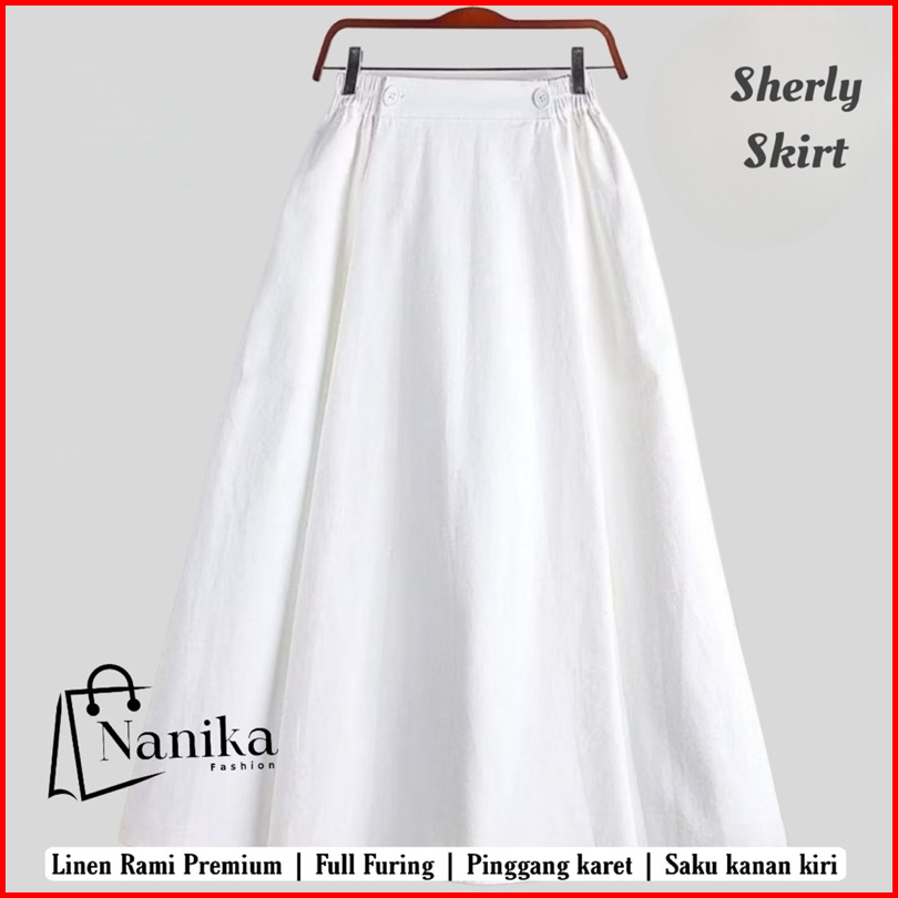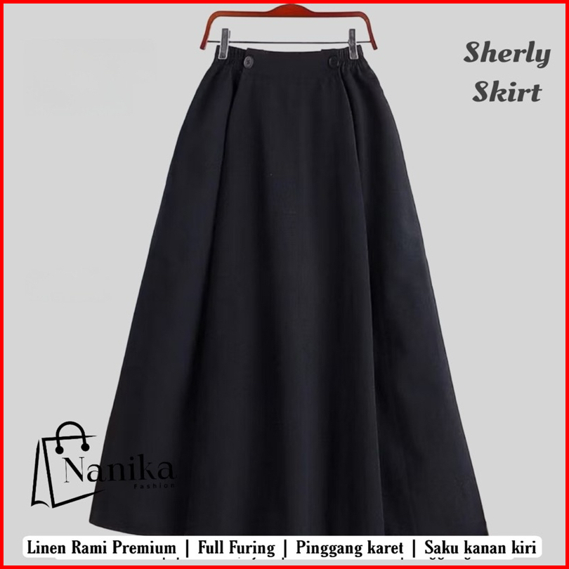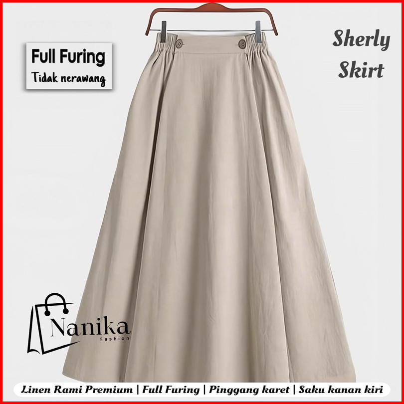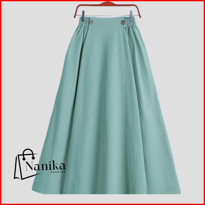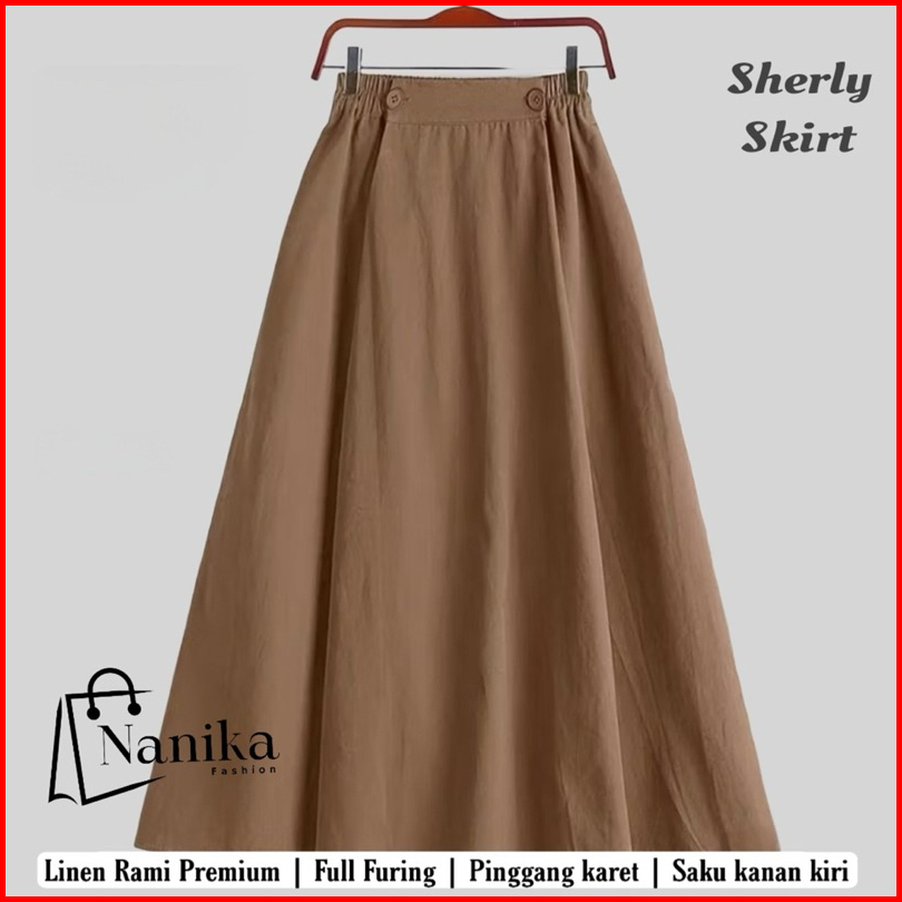 Rok Panjang Motif Polos Katun Linen Premium Adem Sherly Casual Skirt Korean Style A Line By Nanika