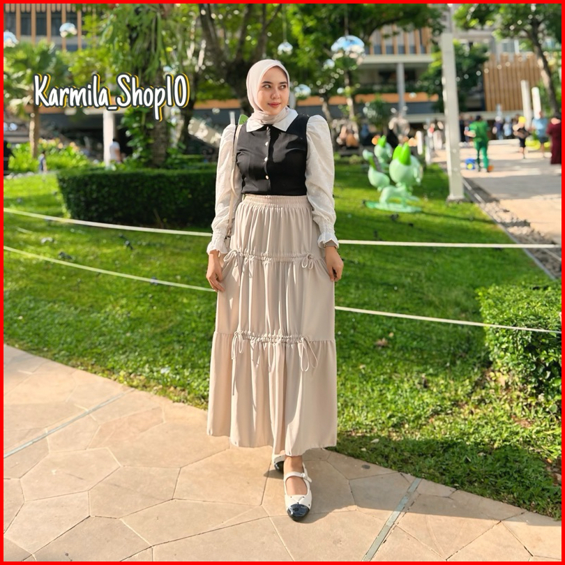 Rok Skirt Serut Hyget Pearly Rok Serut Korean Rok Susun Pita Tali Serut New