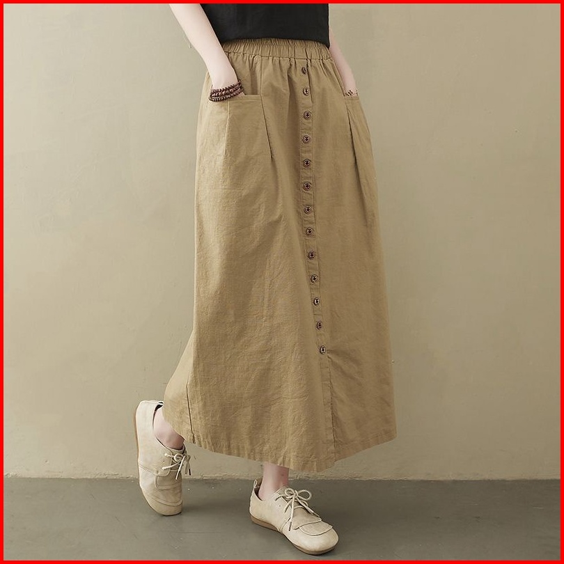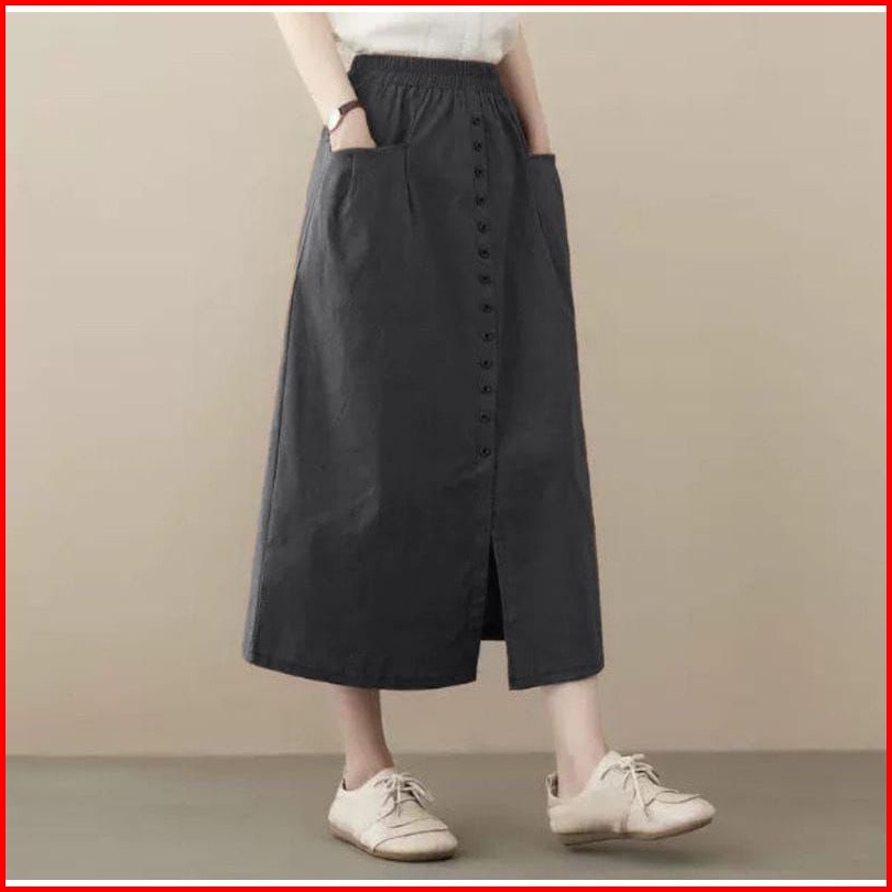Ceisa Skirt Rok Kancing Panjang Wanita Bahan Katun Sigaret Wella Maxi Skirt Gaya Pakaian Remaja Wanita Terbaru Outfit Oo