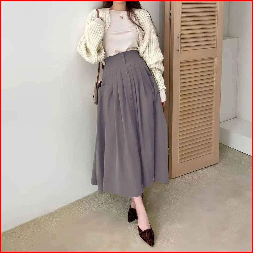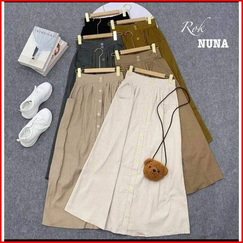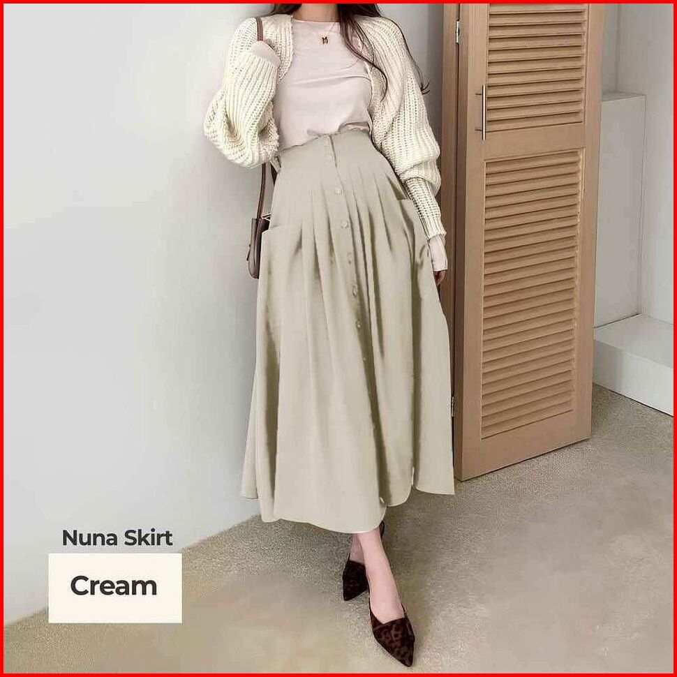 Lena Skirt Rok Wanita Korean Style Polos Bahan Twill Combed Premium Rok Polos Panjang Rok Wanita Size Standart Sampai Ju