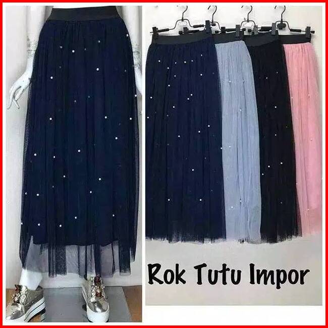 Rok Tutu Mutiara Jersey Jaring All Size 90cm