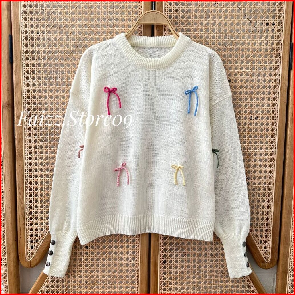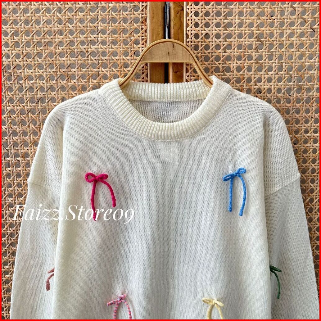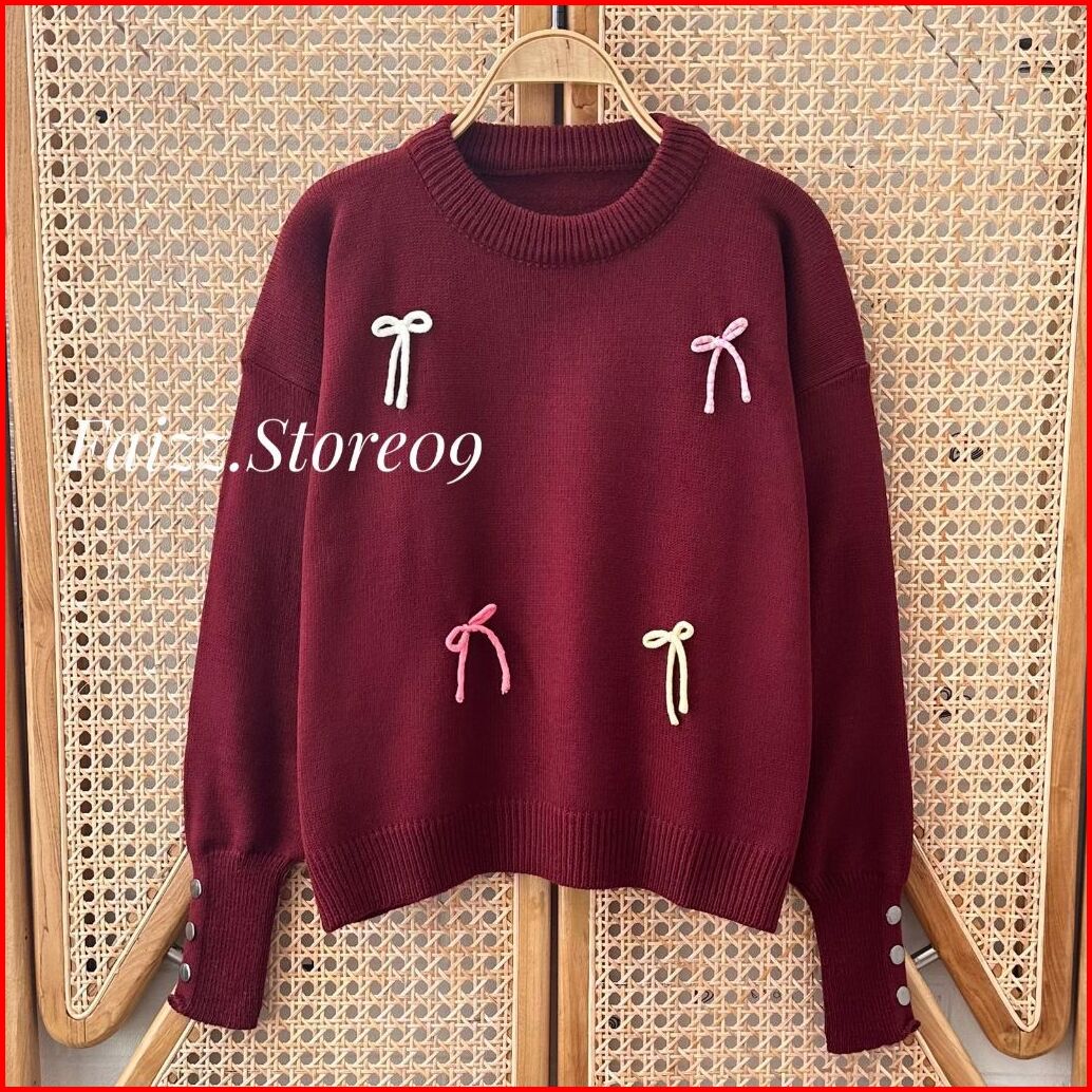 Tamari Atasan Sweater Rajut Motif Pita Lucu Lengan Panjang Premium