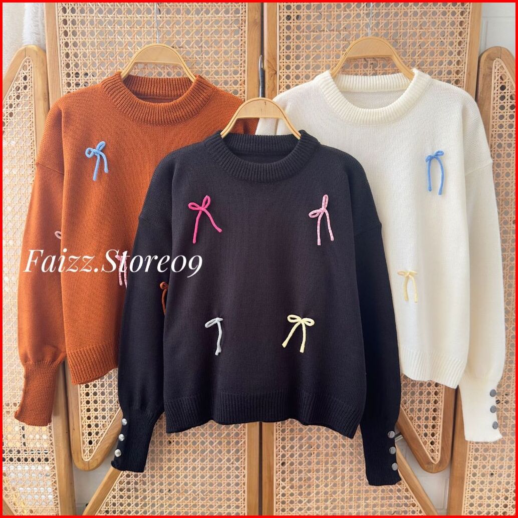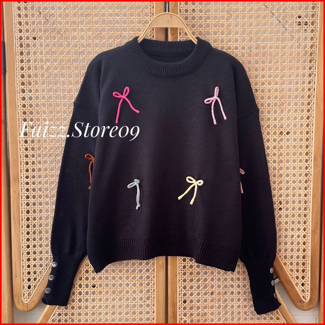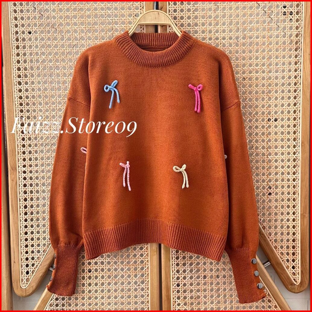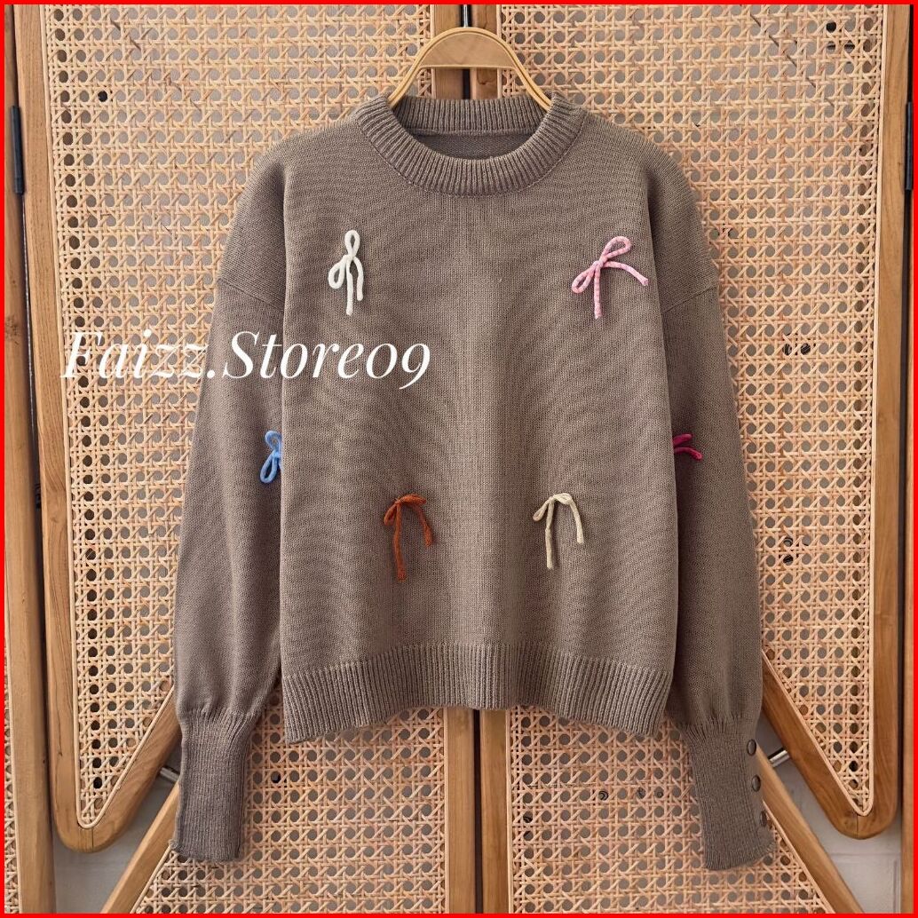 Tamari Atasan Sweater Rajut Motif Pita Lucu Lengan Panjang Premium