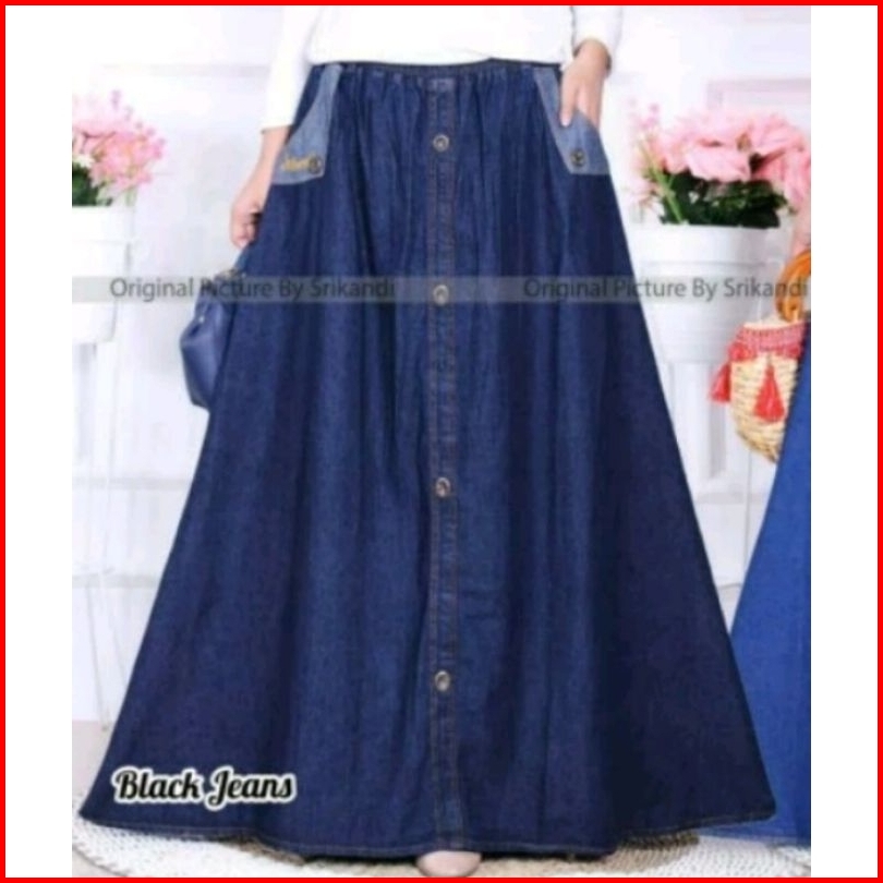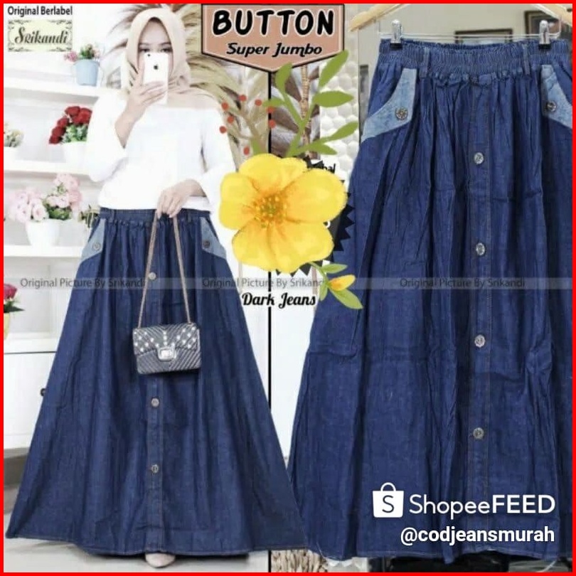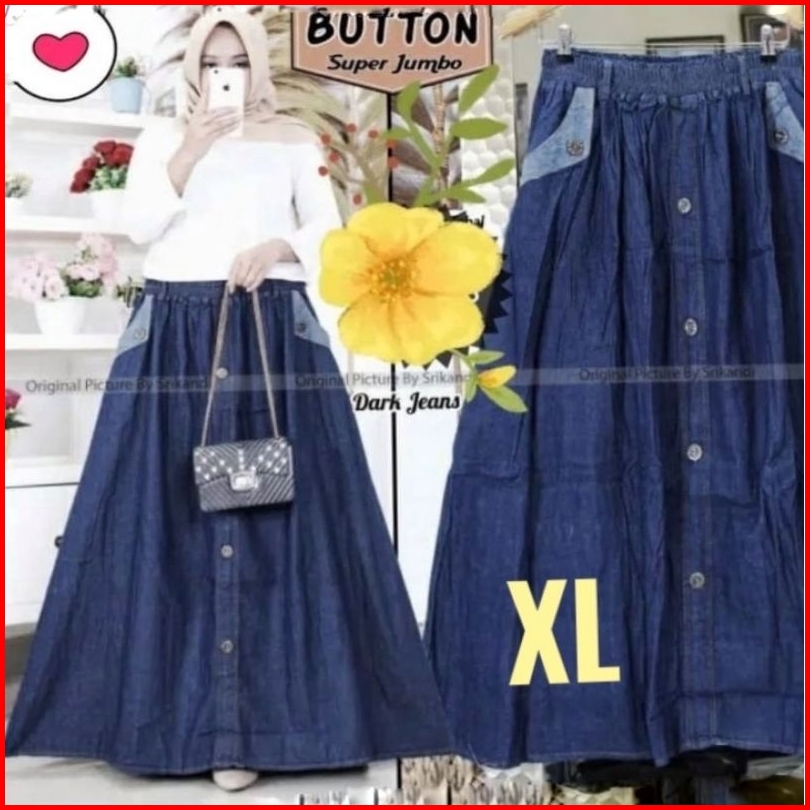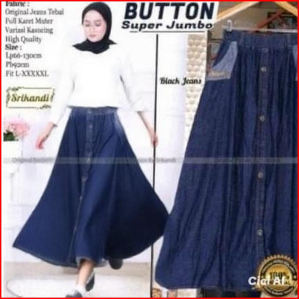 Rok Jeans Panjang Xl Besar Kancing Variasi Depan