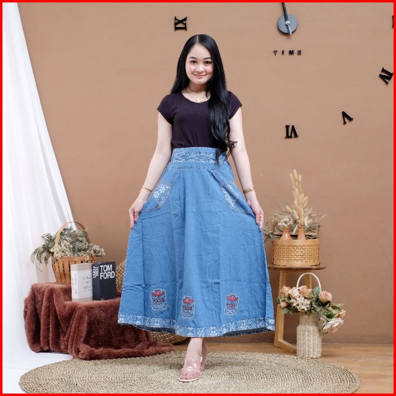 Rok Bordir Wanita Rok Jeans Wanita Dewasa Rok Panjang Rok Bordir Cantik Rok Jeans Murah 97958