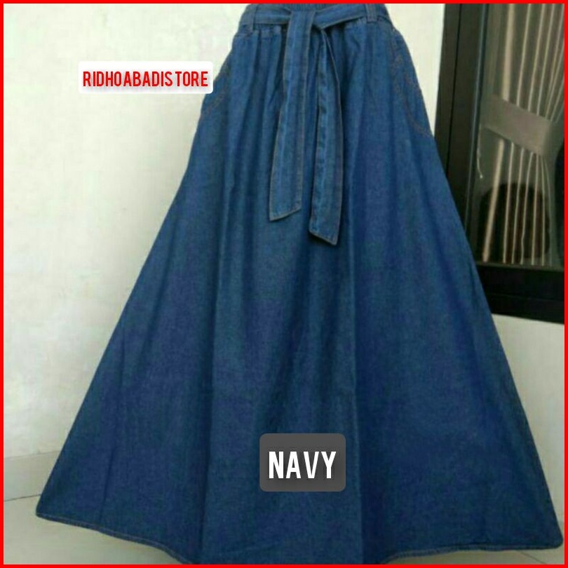 Rok Panjang Jumbo Wanita Rok Jumbo Wanita Bahan Jeans Model Pita Size Jumbo 60-80kg