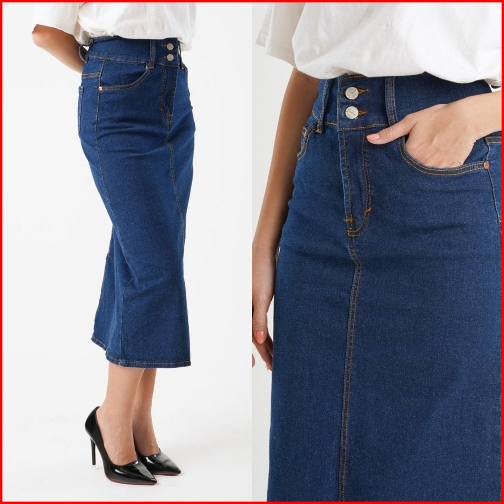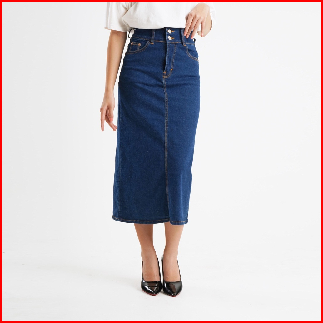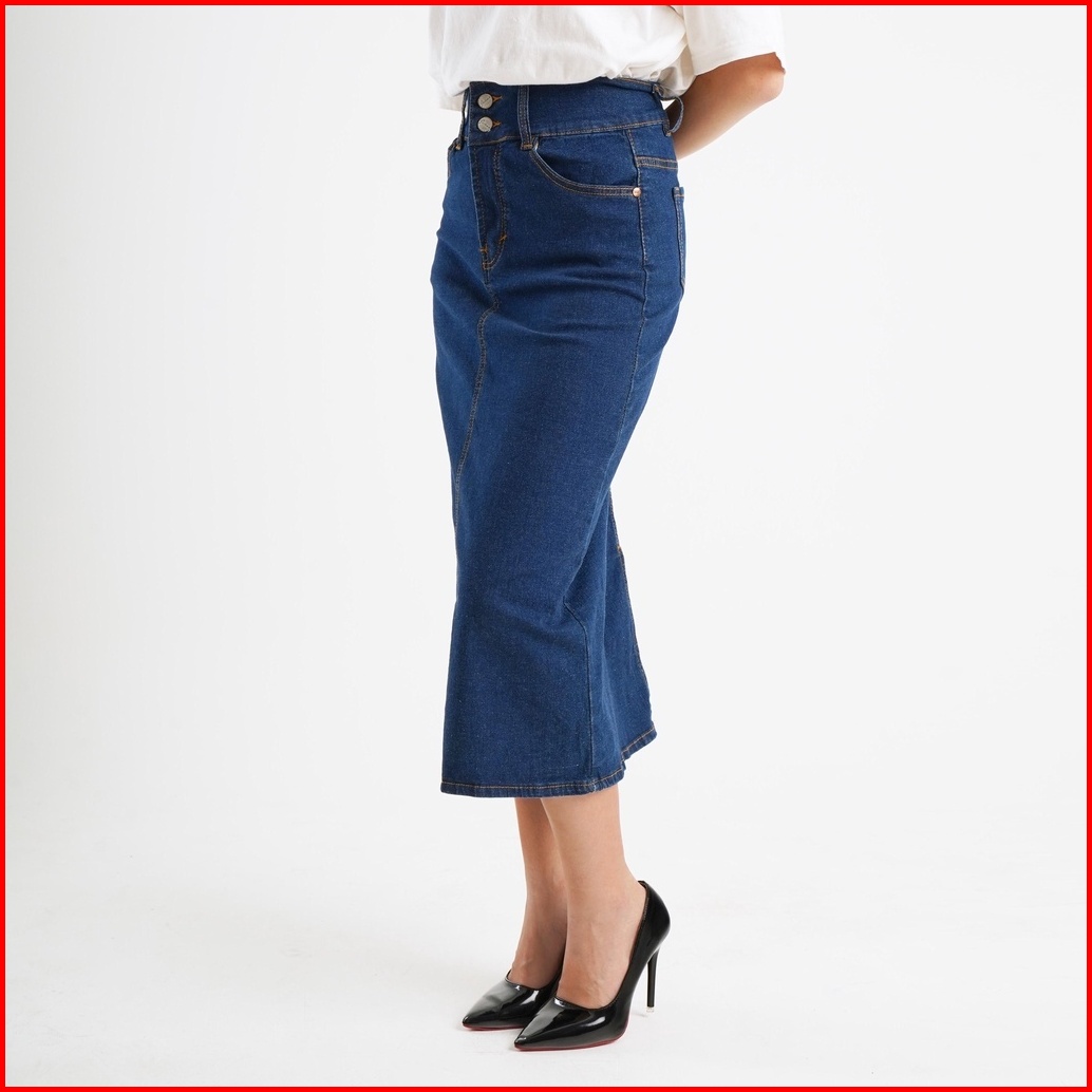 Rok Jeans Wanita Belah 7 9 Span Rachel
