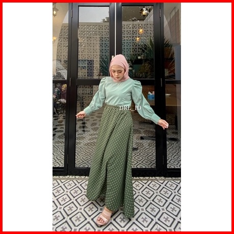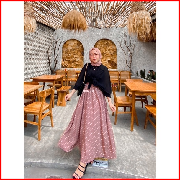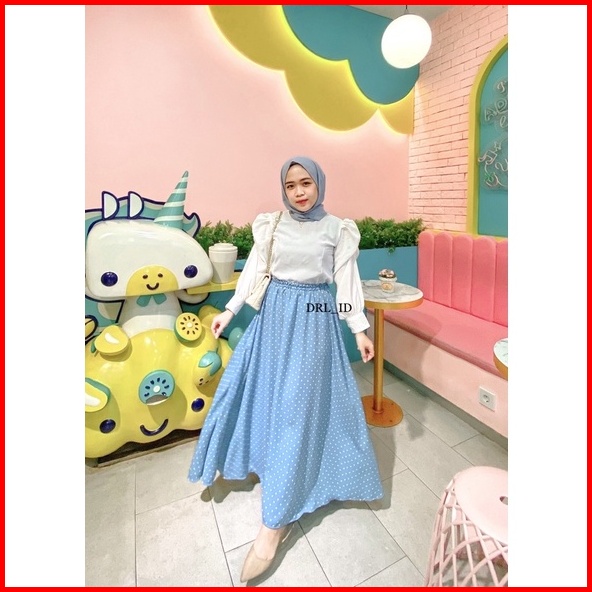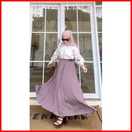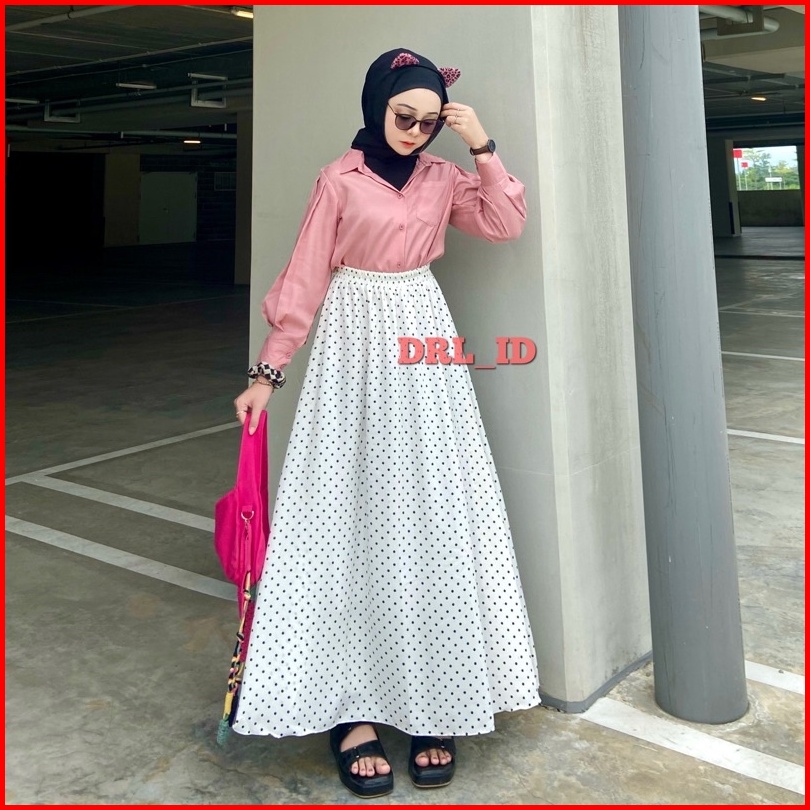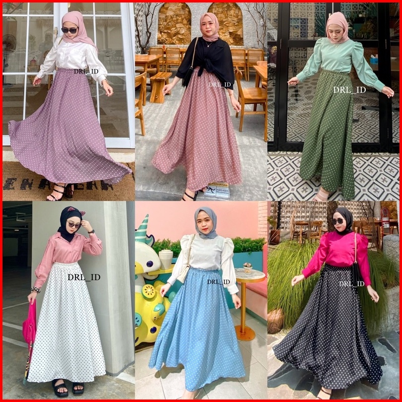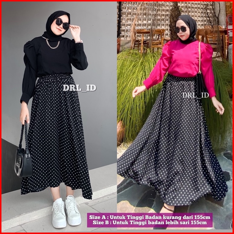 Ready Stock Rok Polkadot Polka Skirt Rok Panjang Wanita Pinggang Full Karet Model Longgar Bentuk Payung Warna Hitam Coks