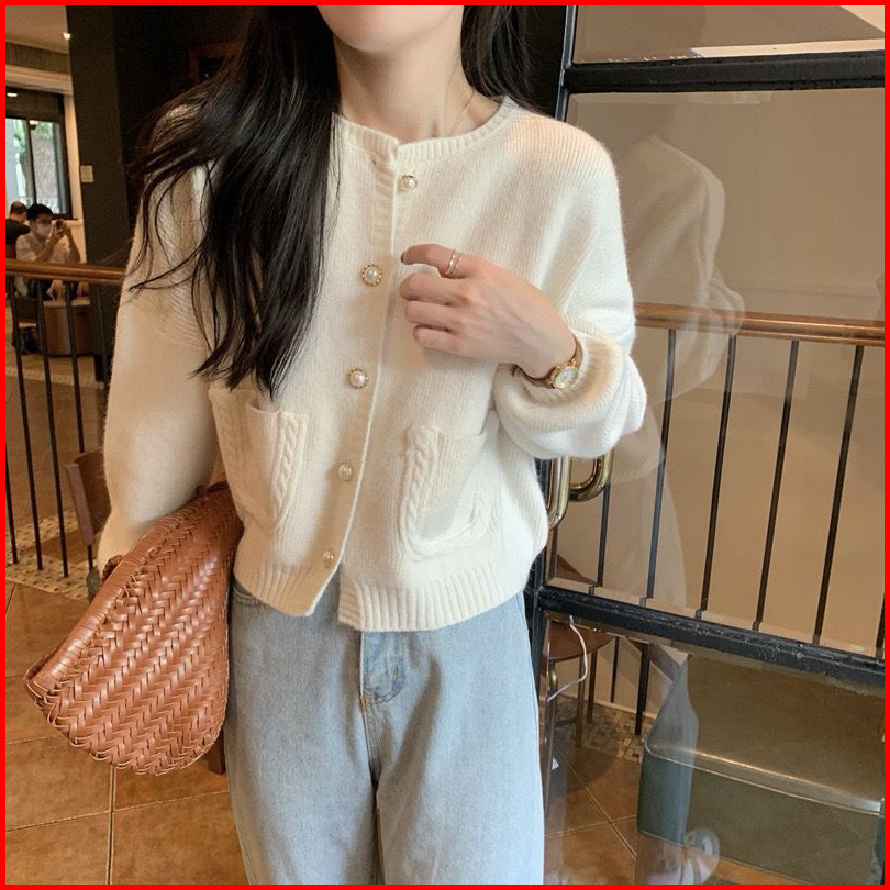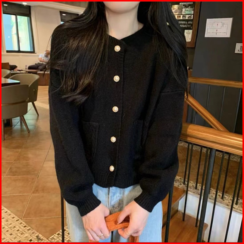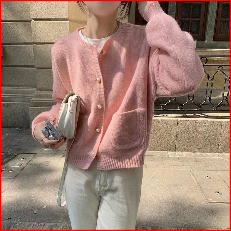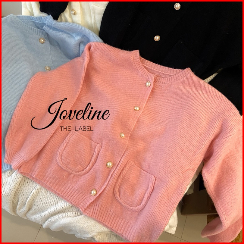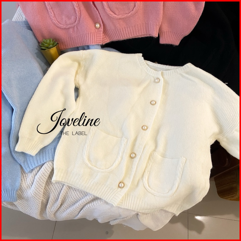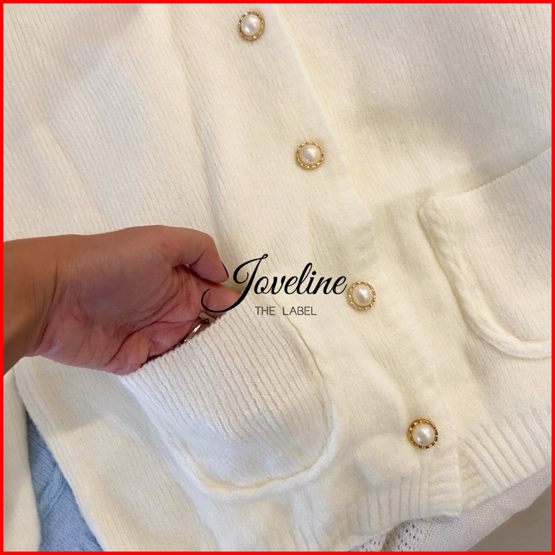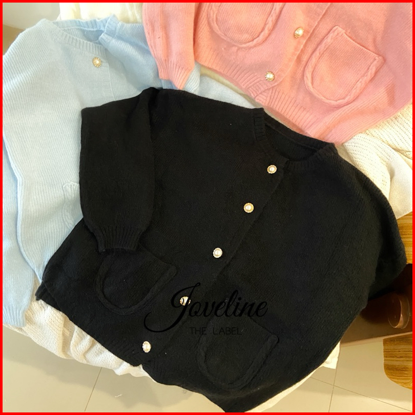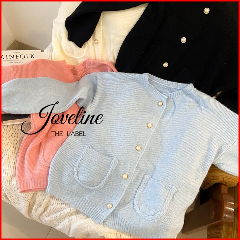 Joveline - Cardigan Korea Kancing Mutiara Round Neck Wanita Drakor Import Pastel Sweater Rajut Santai Knitwear Aaa1