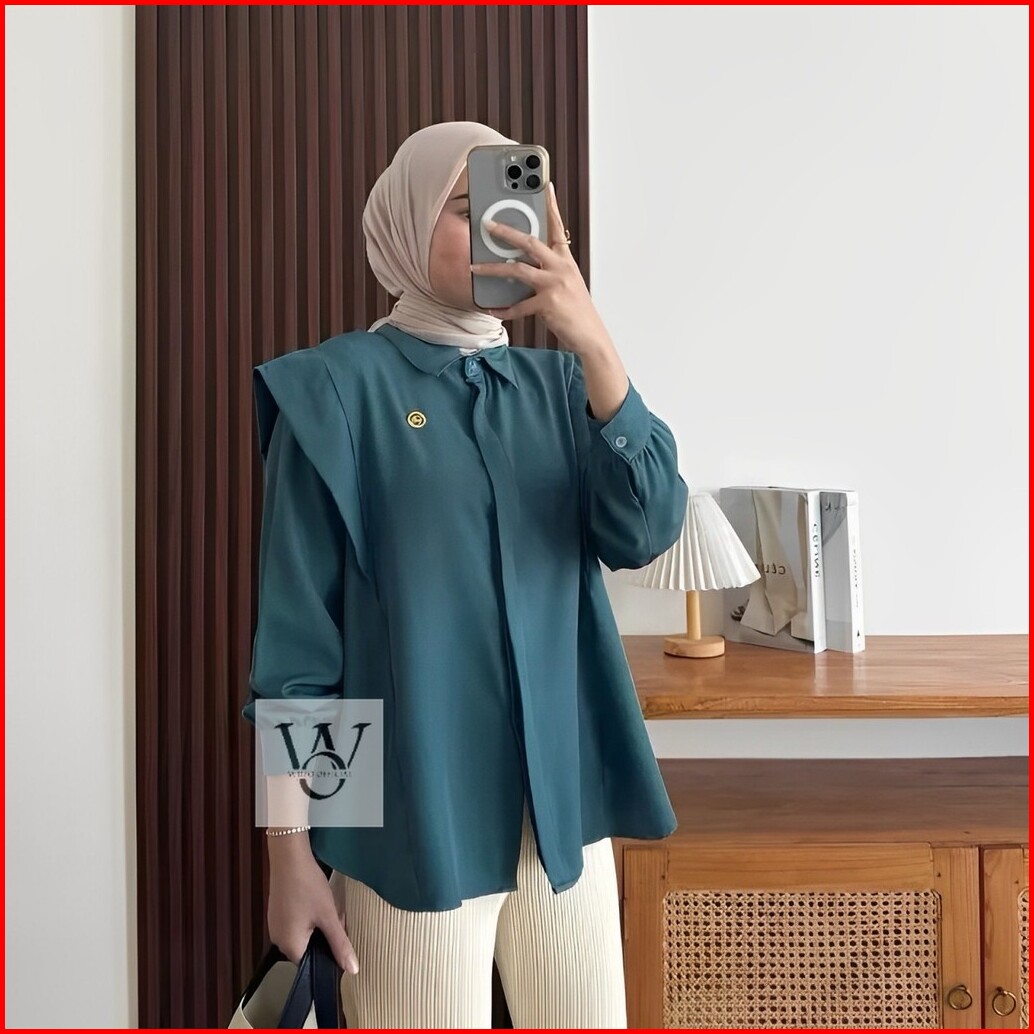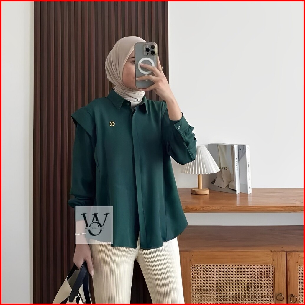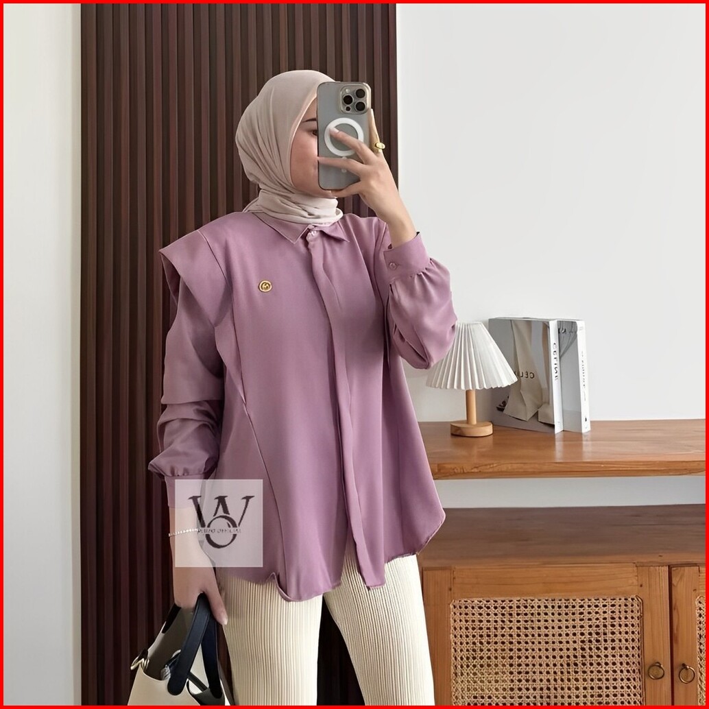 Kemeja Andini Atasan Wanita Blouse Polos Lengan Panjang Trend Korean Style Free Bross
