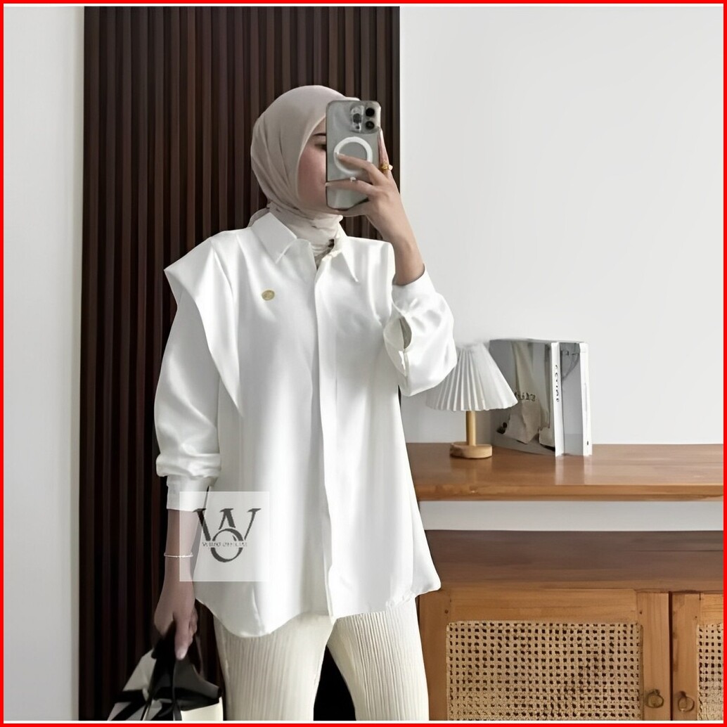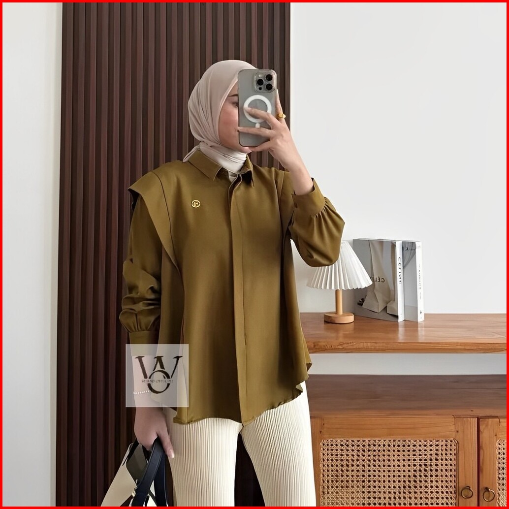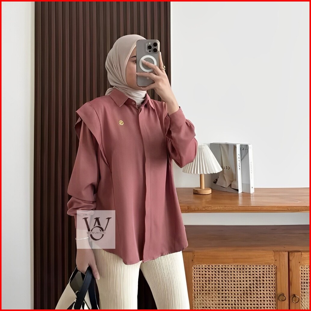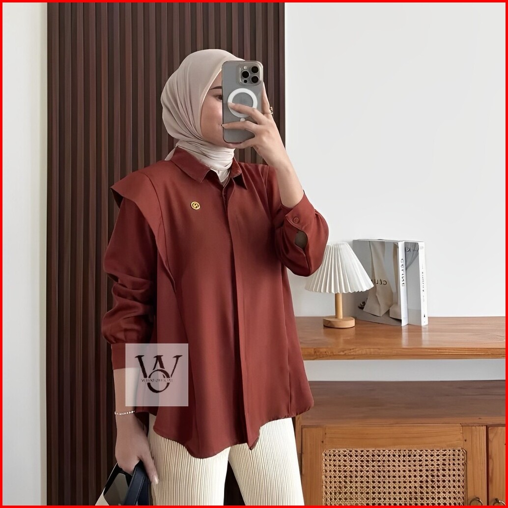 Kemeja Andini Atasan Wanita Blouse Polos Lengan Panjang Trend Korean Style Free Bross