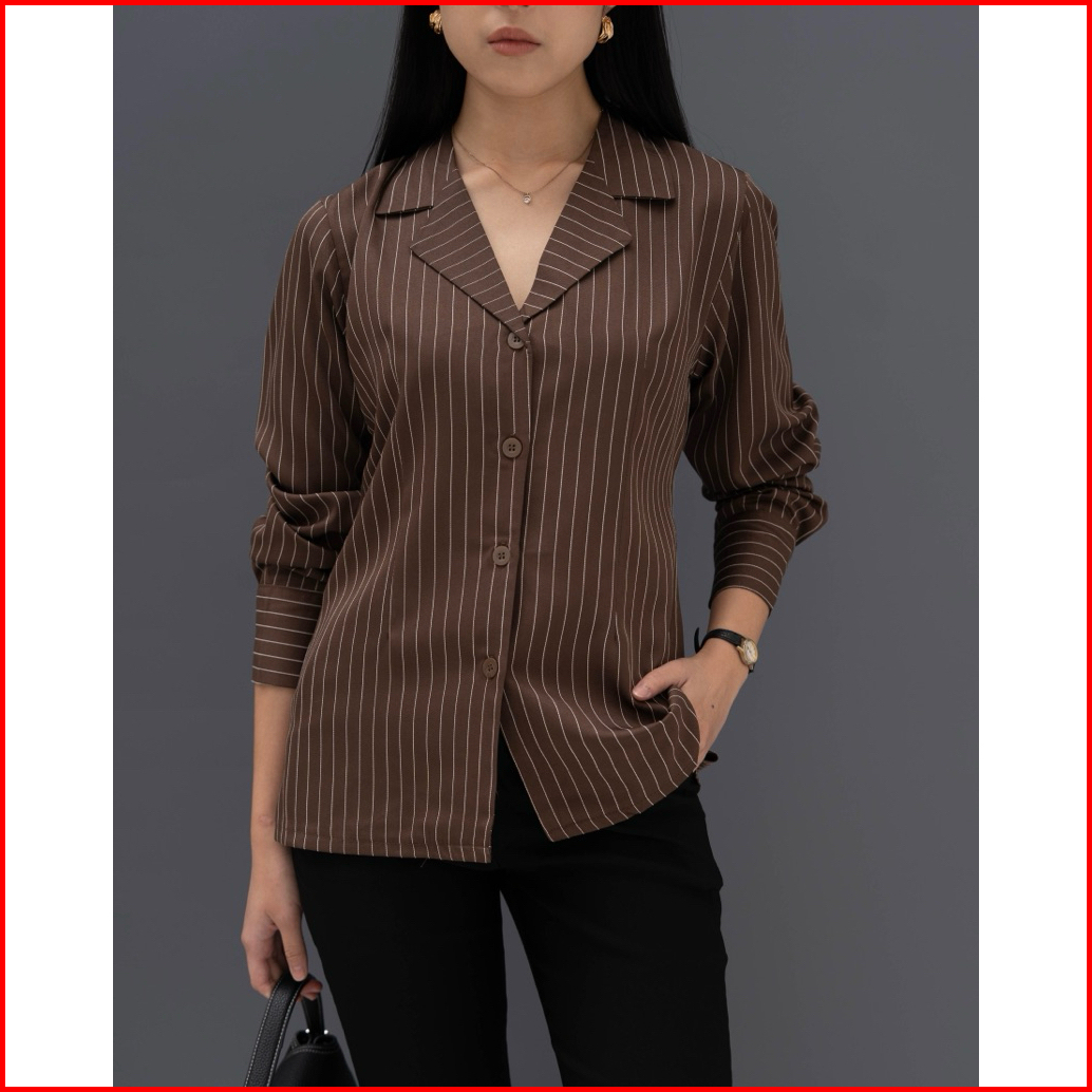 Iweargracie - Morgan Strip Fitted Shirt Kemeja Wanita Atasan Wanita Blouse Wanita Kemeja Kerja