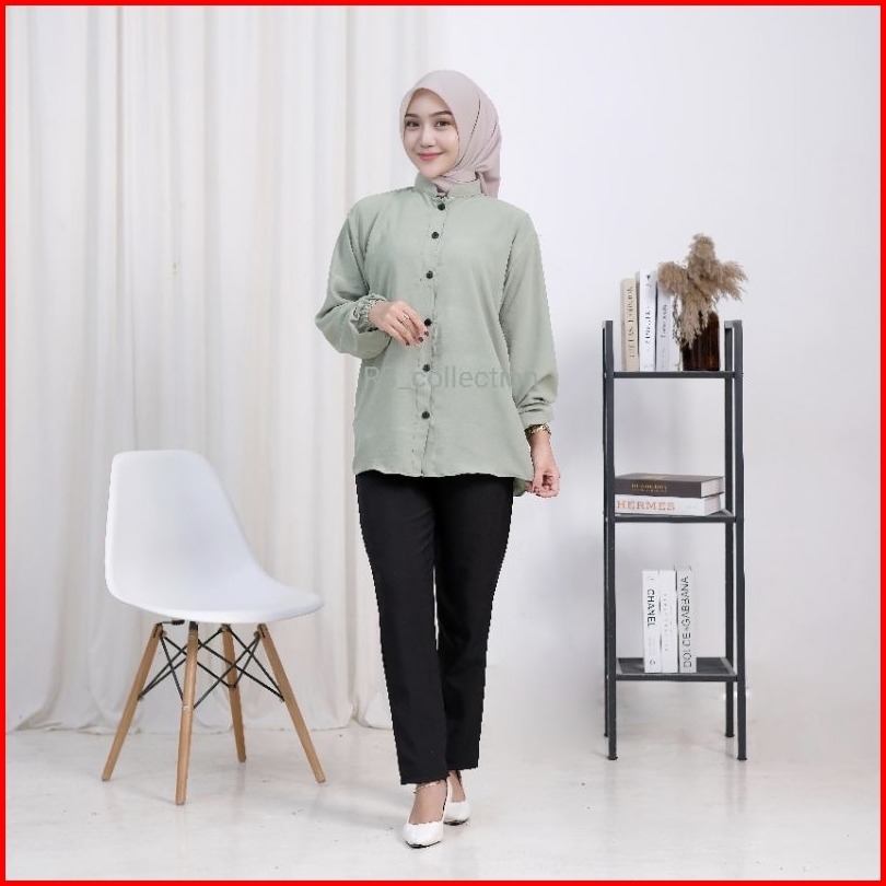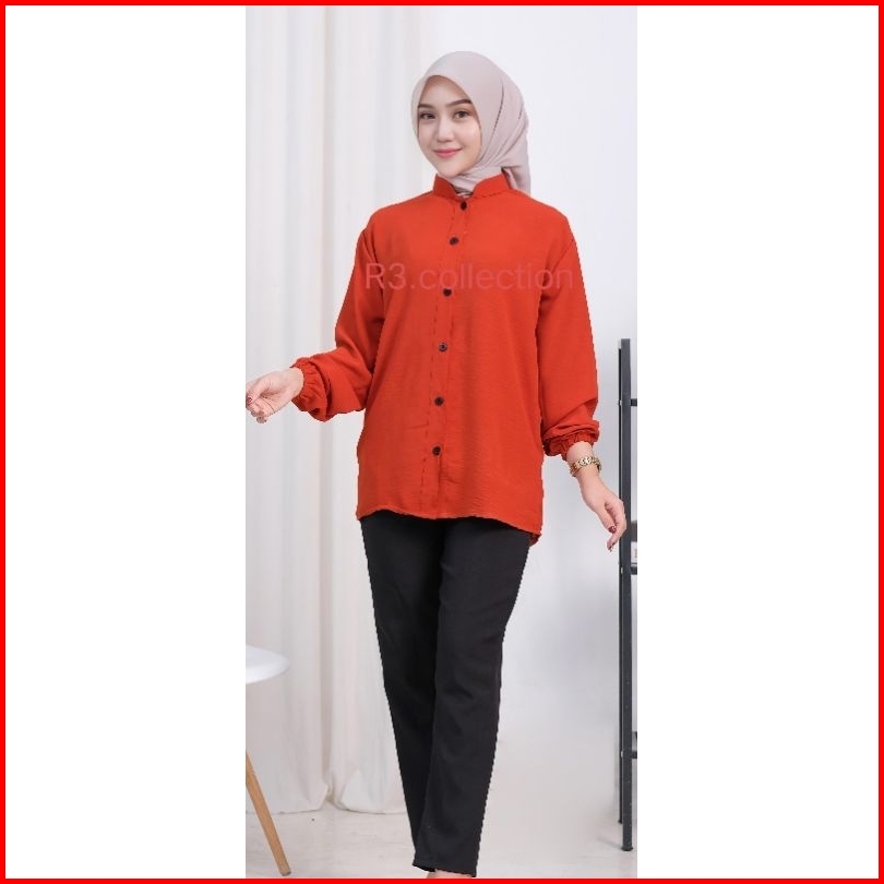 Baju Atasan Wanita Jumbo Lengan Karet - Kemeja Cringkel Airflow