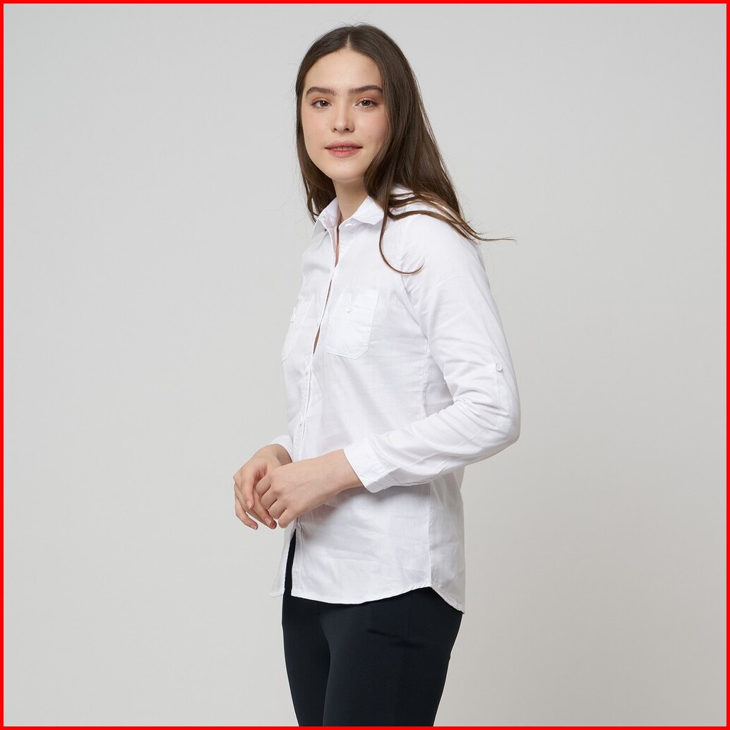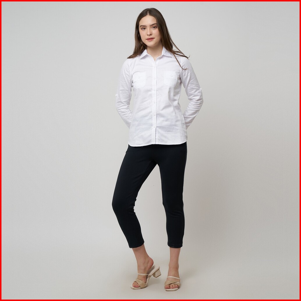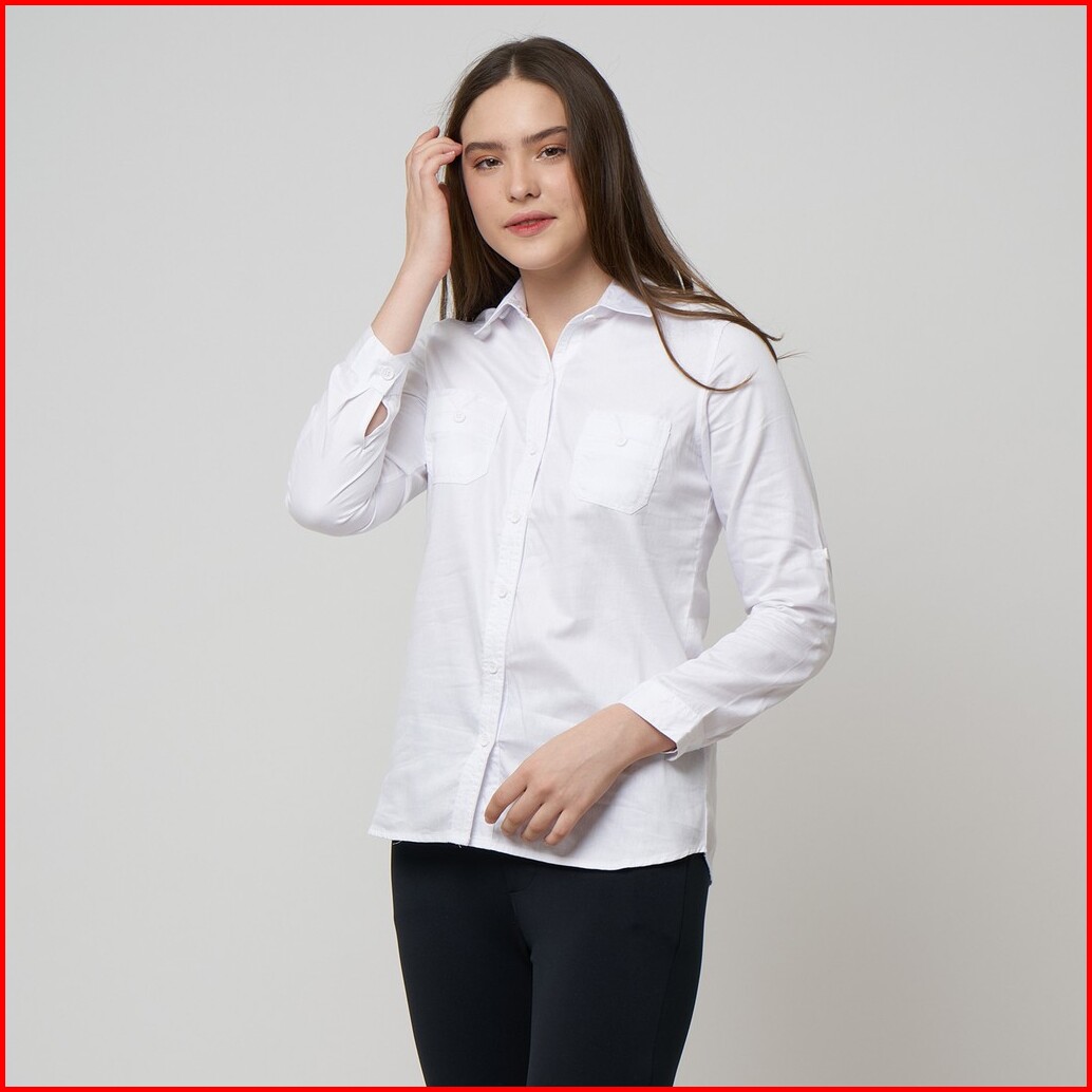 Mcb Kemeja Wanita Big Size Basic Polos Panjang Double Pocket Putih 5502101.5101101