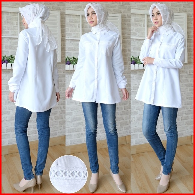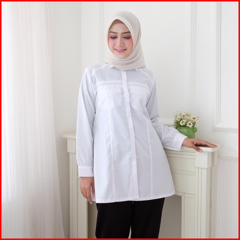 Seenaoutfit - Km 002 Kemeja Baju Putih Polos Pns Wanita Kerja Kantoran Terlaris Baju Kantor Jumbo Cewek Formal Kemeja 02
