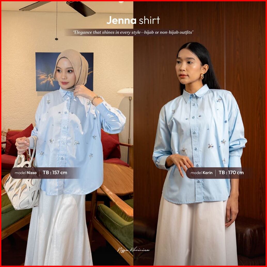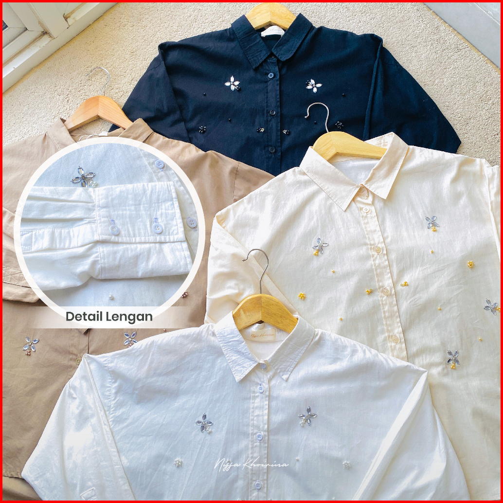 Bynissa - Jenna Shirt - Atasan Wanita - Kemeja Katun Lengan Panjang - Blouse - Payet