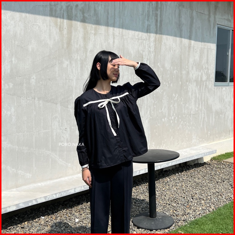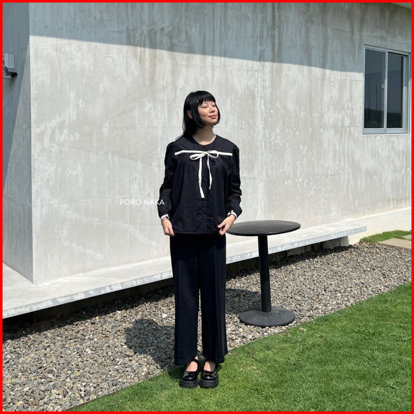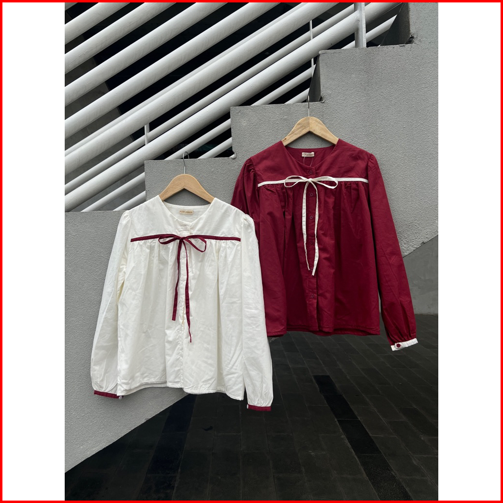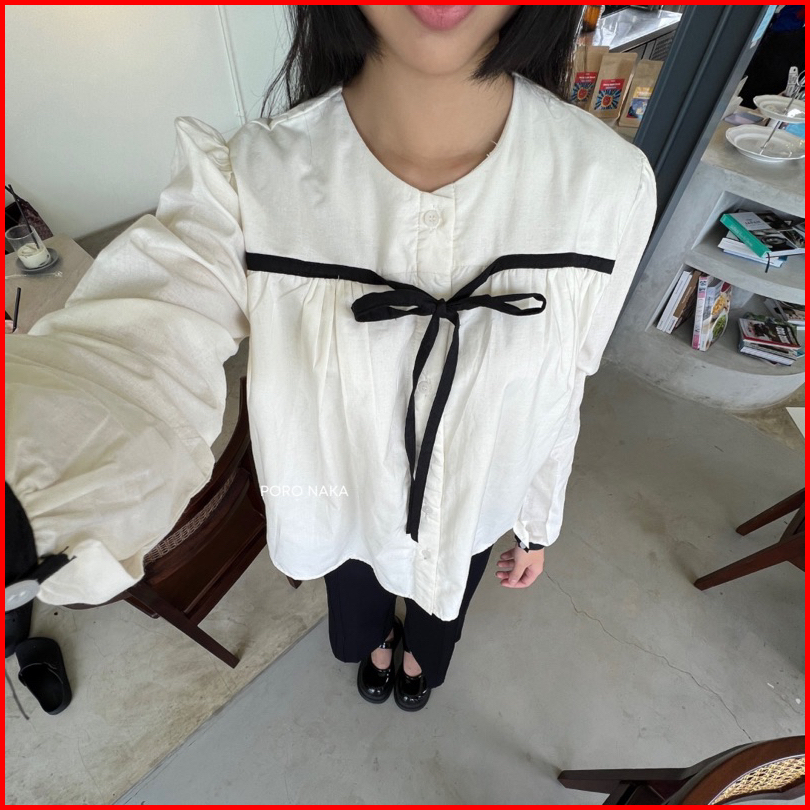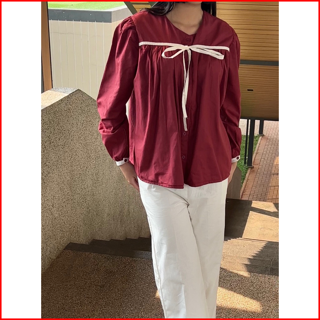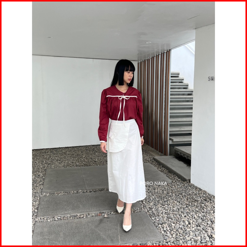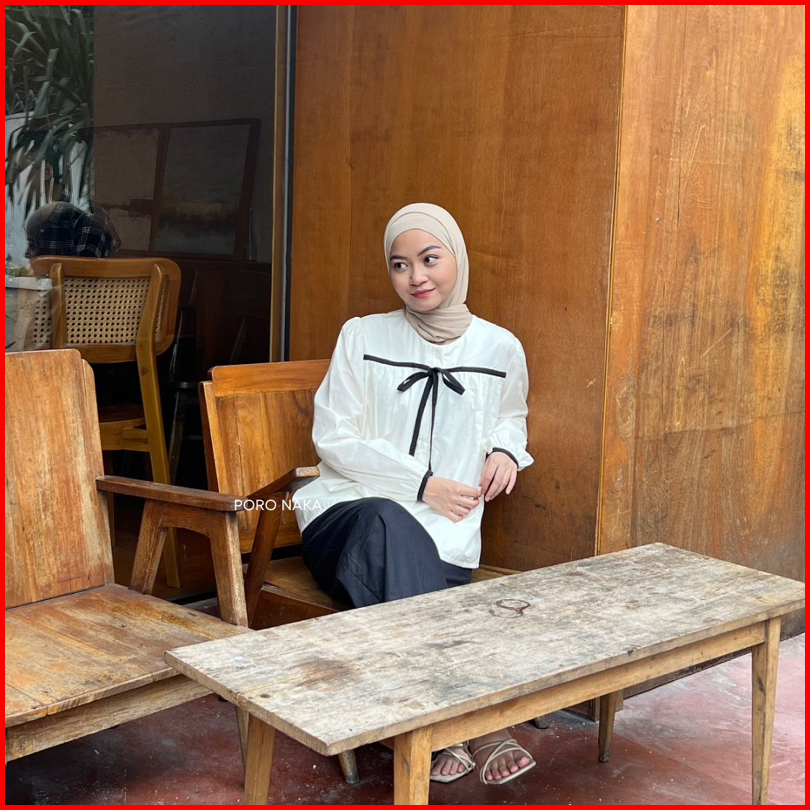 Poro Naka - Yumi Blouse Atasan Blus Wanita Baju Kantor Longsleeve Pita