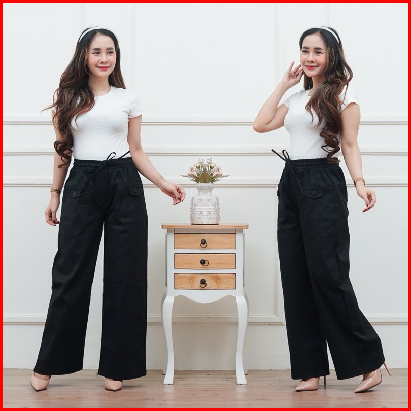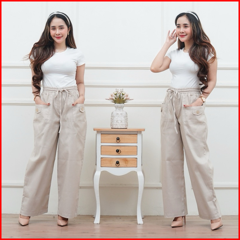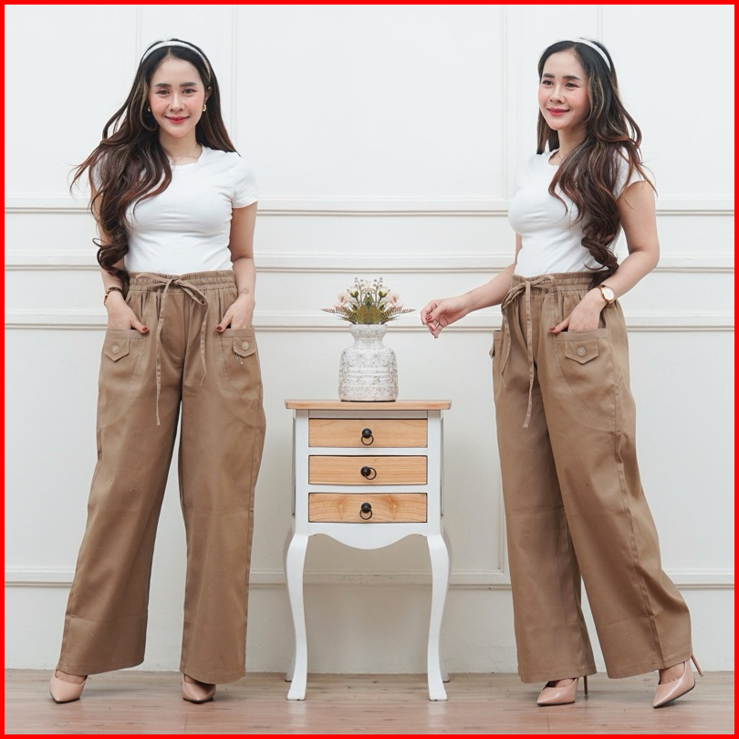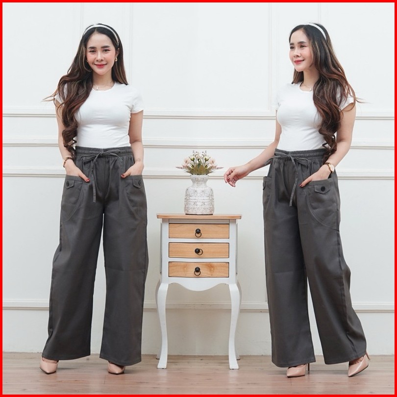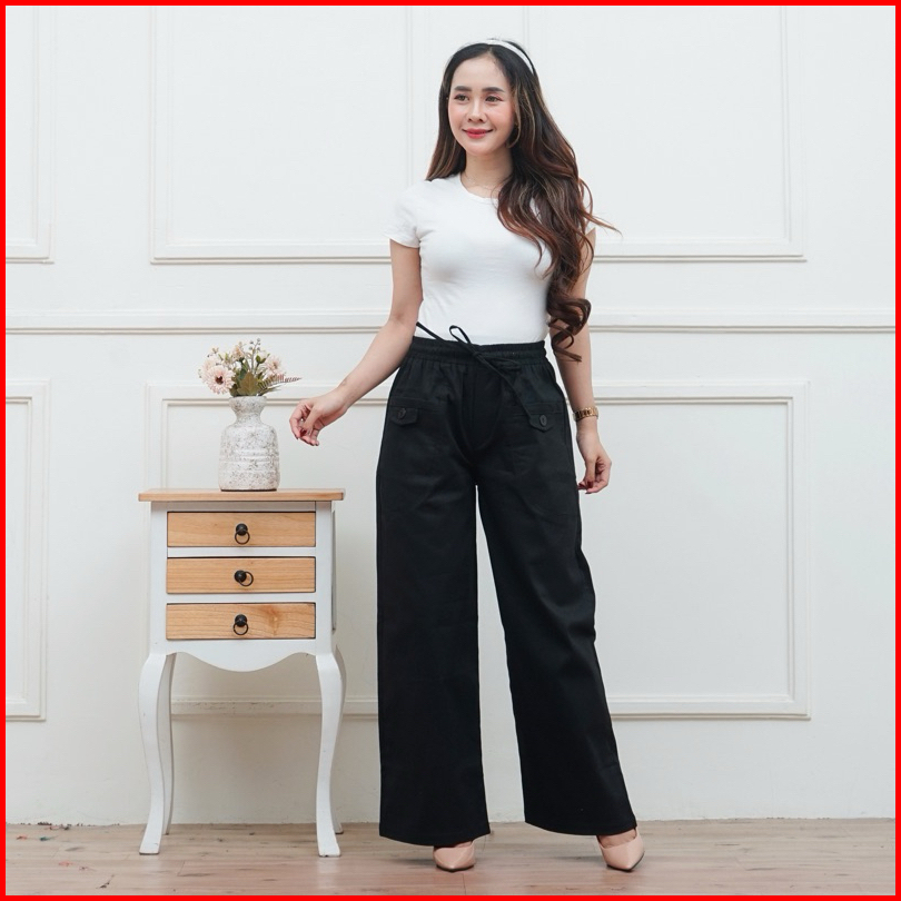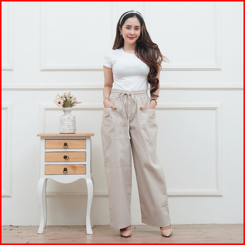 Celana Kulot Wanita Highwaist Korean Style Kekinian Kantong Depan Variasi Kancing