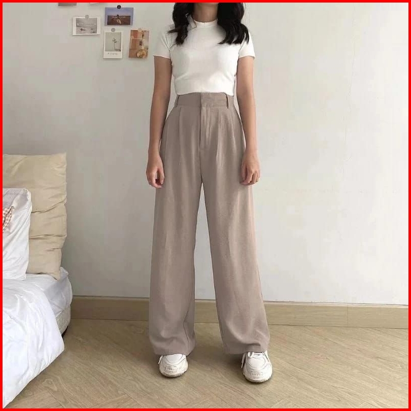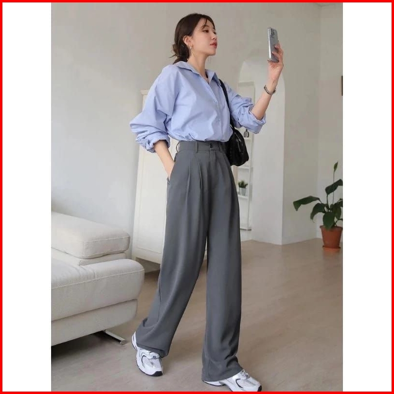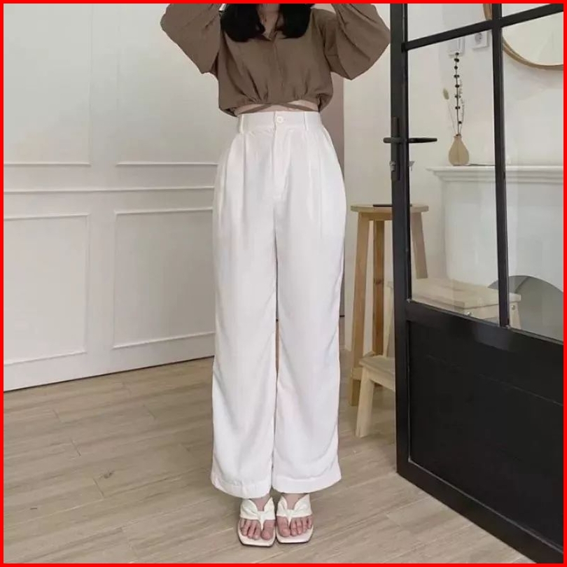 Loose Pants Trousers Wanita Kain Tebal Anti Lecek - Celana Anti Kusut -celana Kulot Wanita - Celana