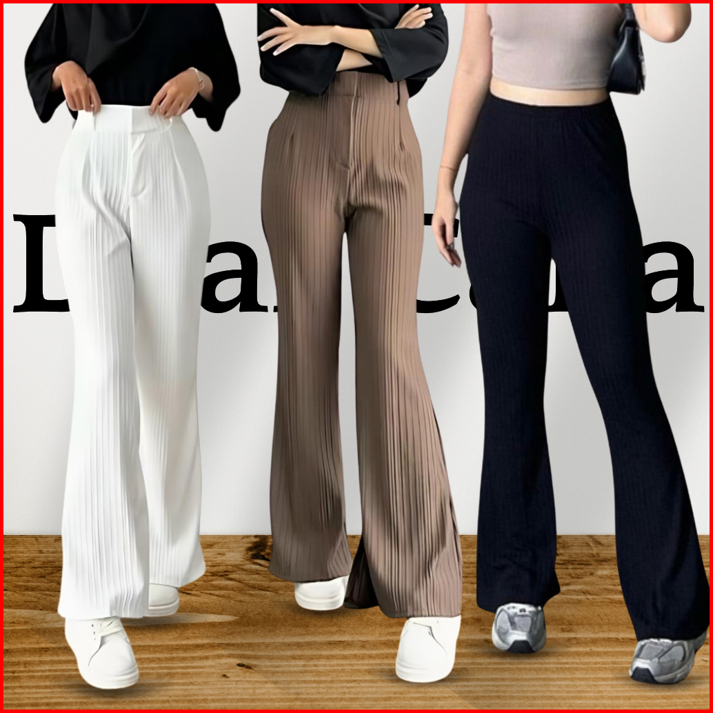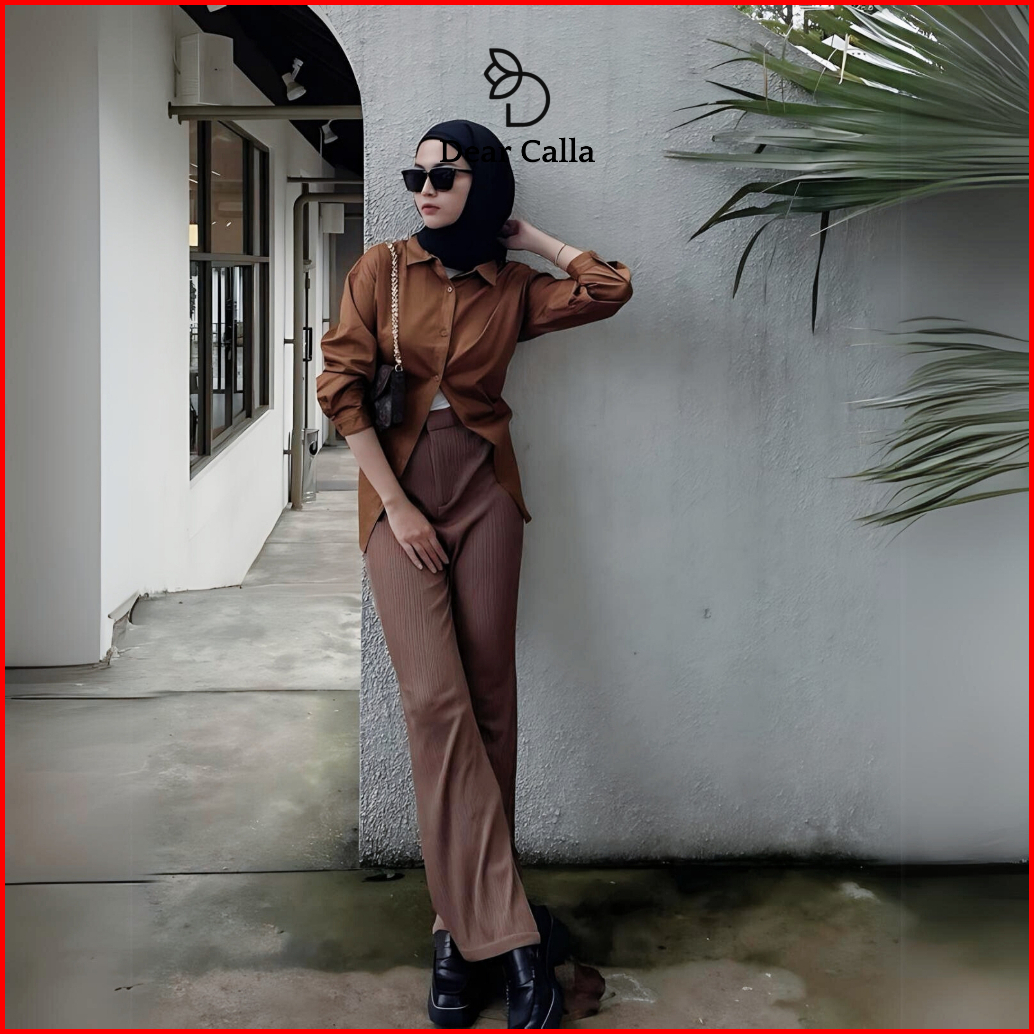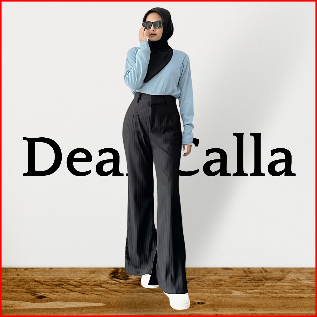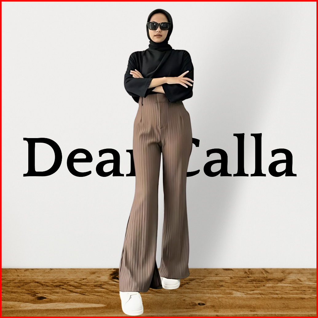 Dear Calla - Celana Knit Cutbray - Kulot Highwaist Wanita - Cutbray Knit Pants