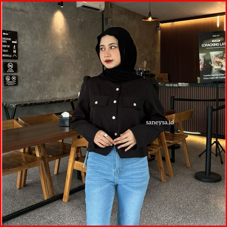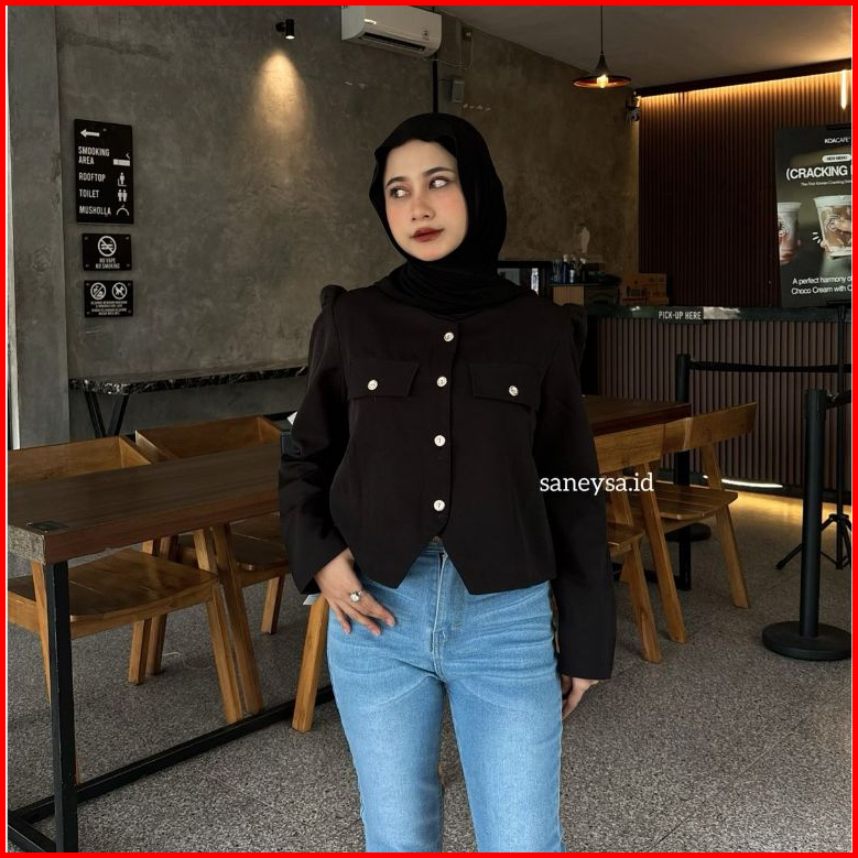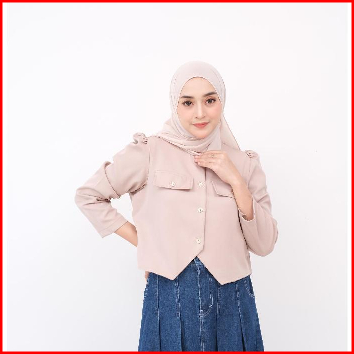 Elena Crop Blazer Wanita - Outer Basic Wanita Luaran Top - Vest Rompi - Atasan Wanita Basic - Outer Wanita Lengan Panjan