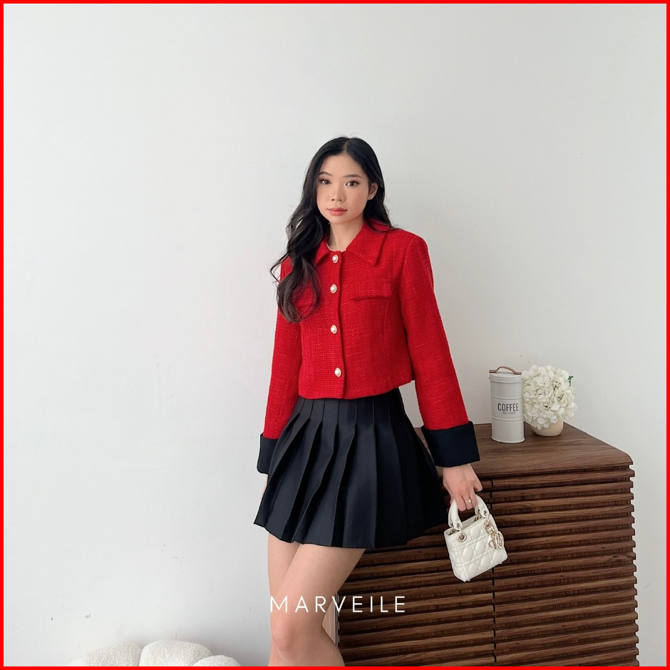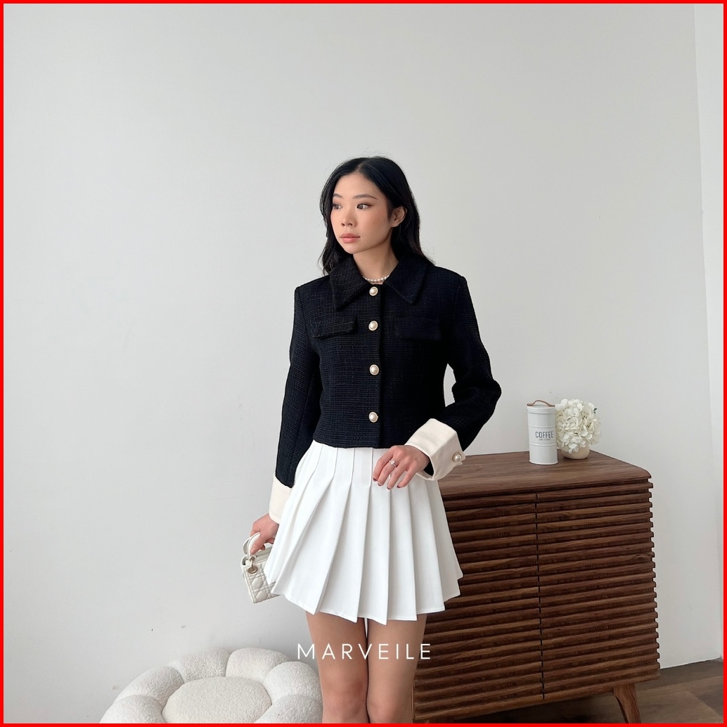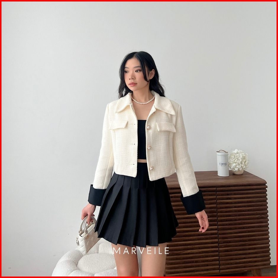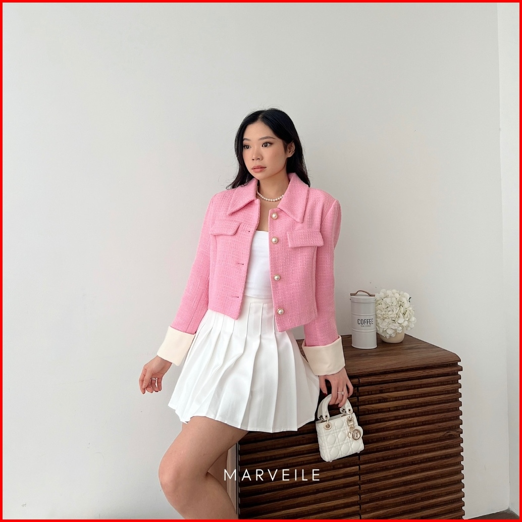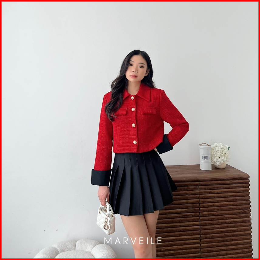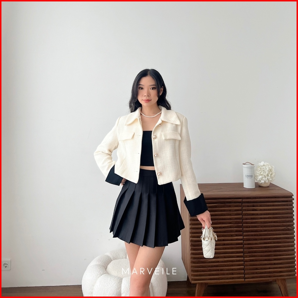 Marveile Kimsoo Tweed Blazer Top Korean Blazer Top Wanita