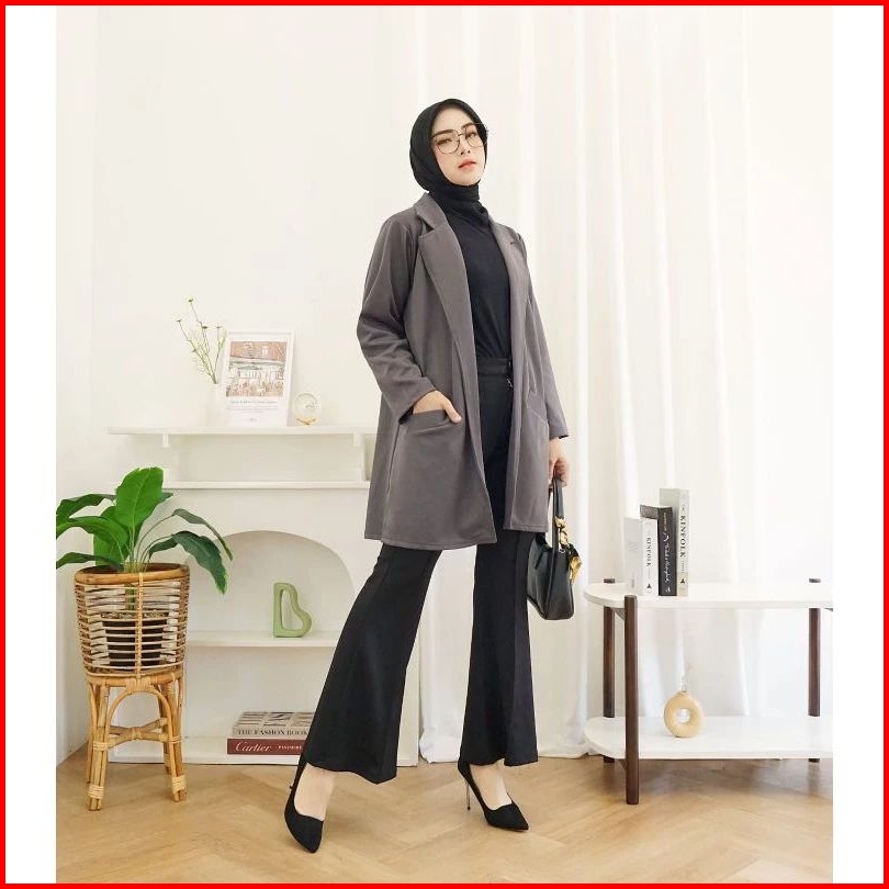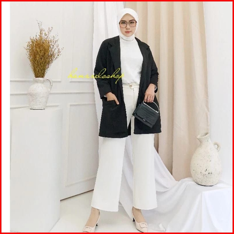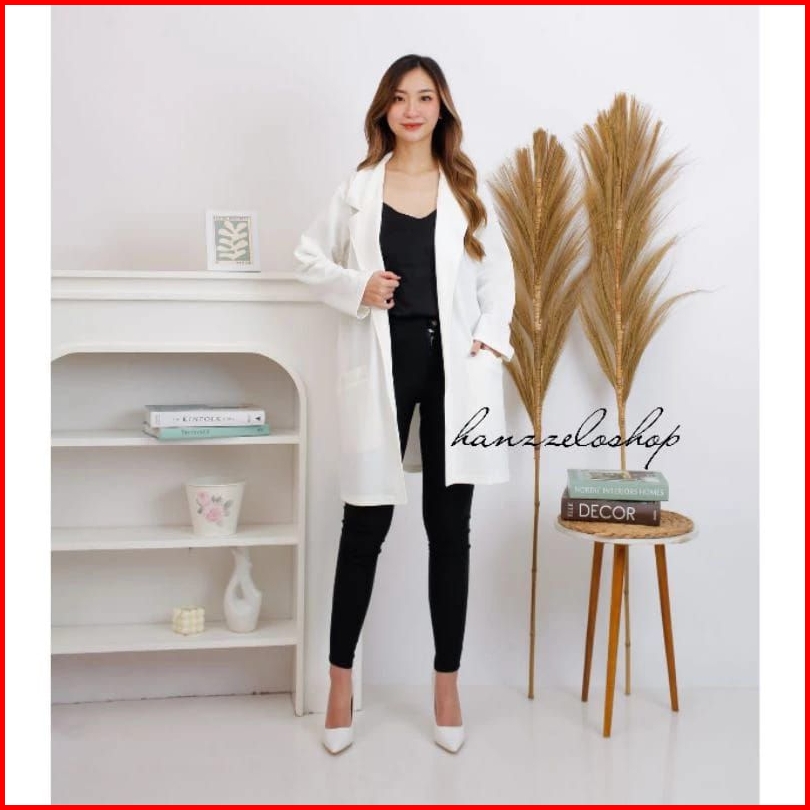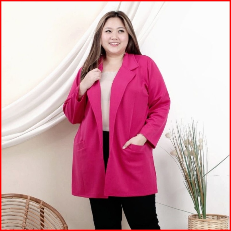 Ld Jumbo 120 130 170 Xxl Baju Atasan Long Blazer Outer Kerja Wanita Resmi Scuba Premium Polos Hitam Busui Casual Korea K