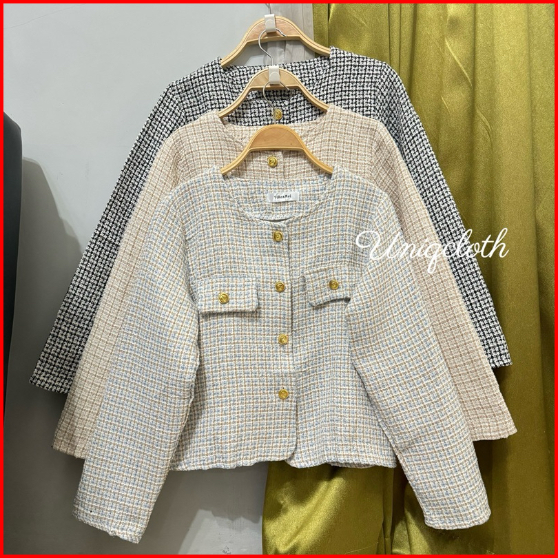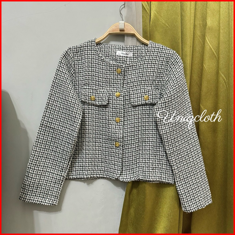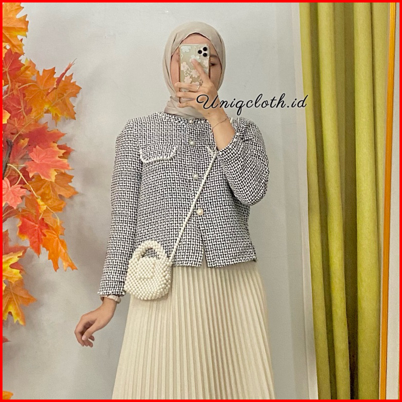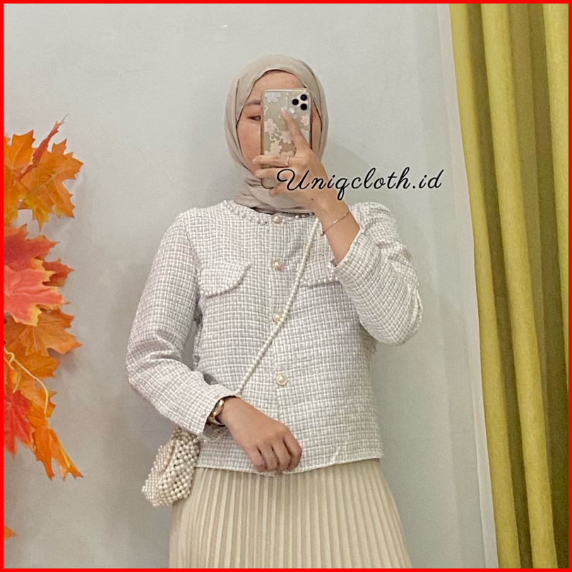Uniqcloth - Blazer Tweed Pearl Korean Style Import