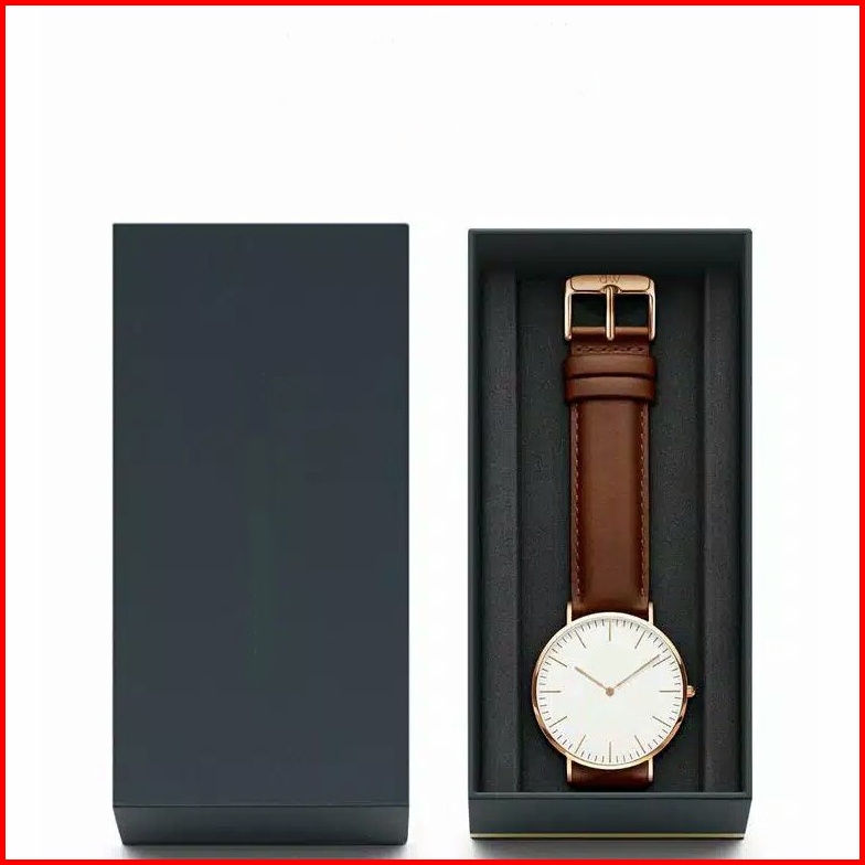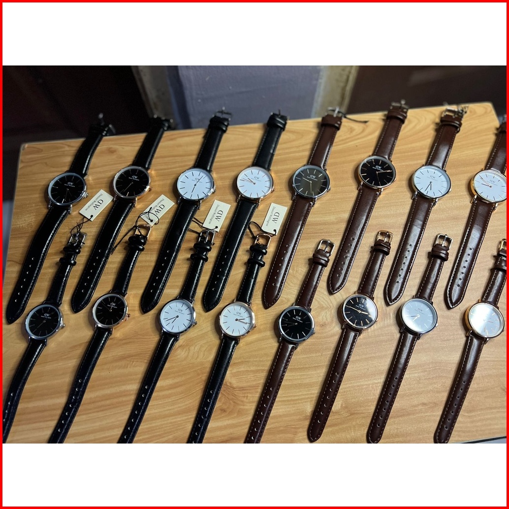 Best Seller Jam Tangan Fashion Couple Tali Kulit Paket Box Paperbag Manual Book