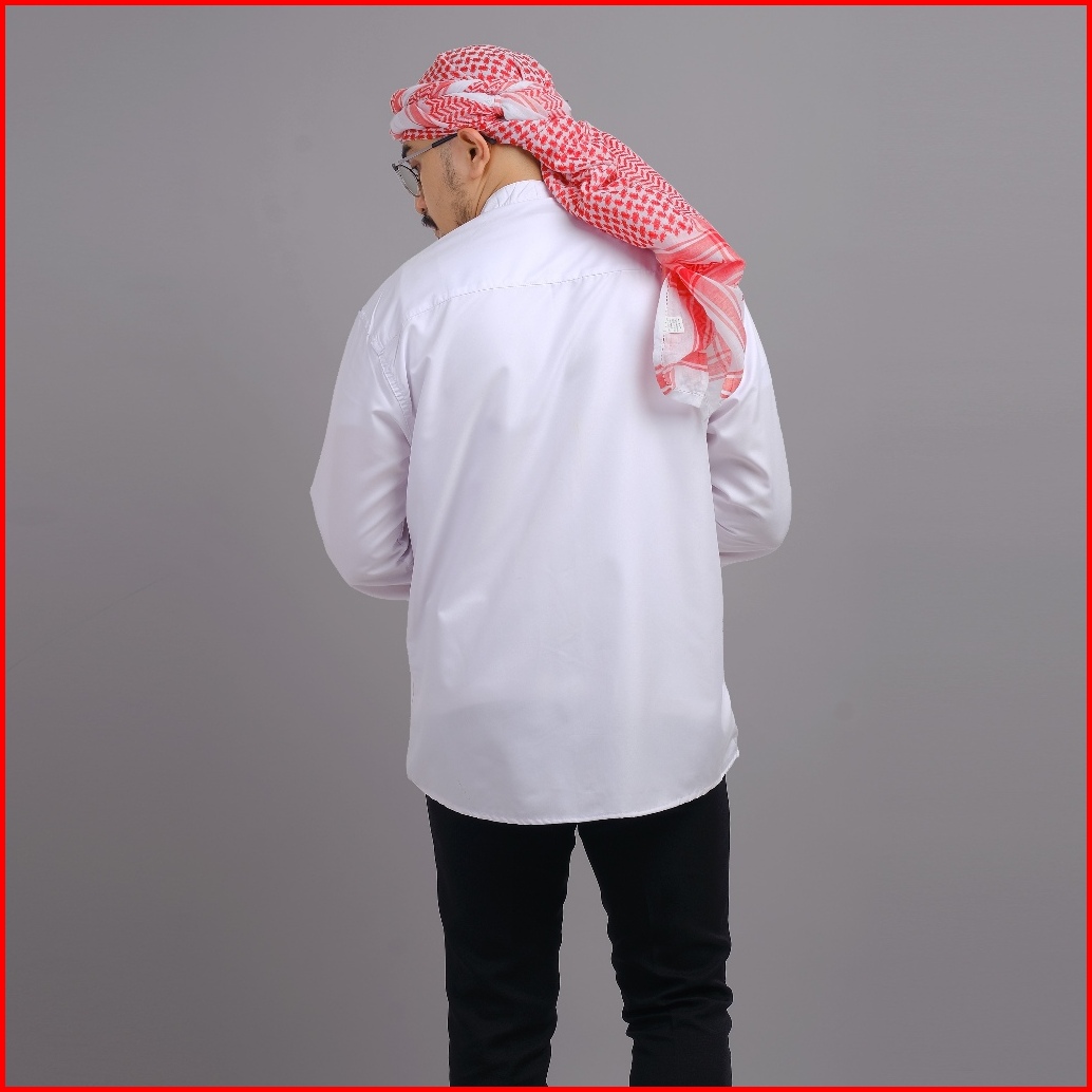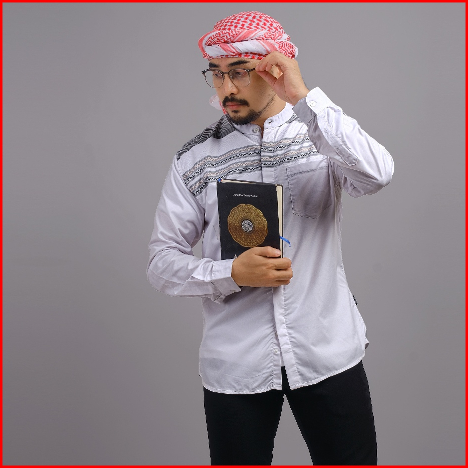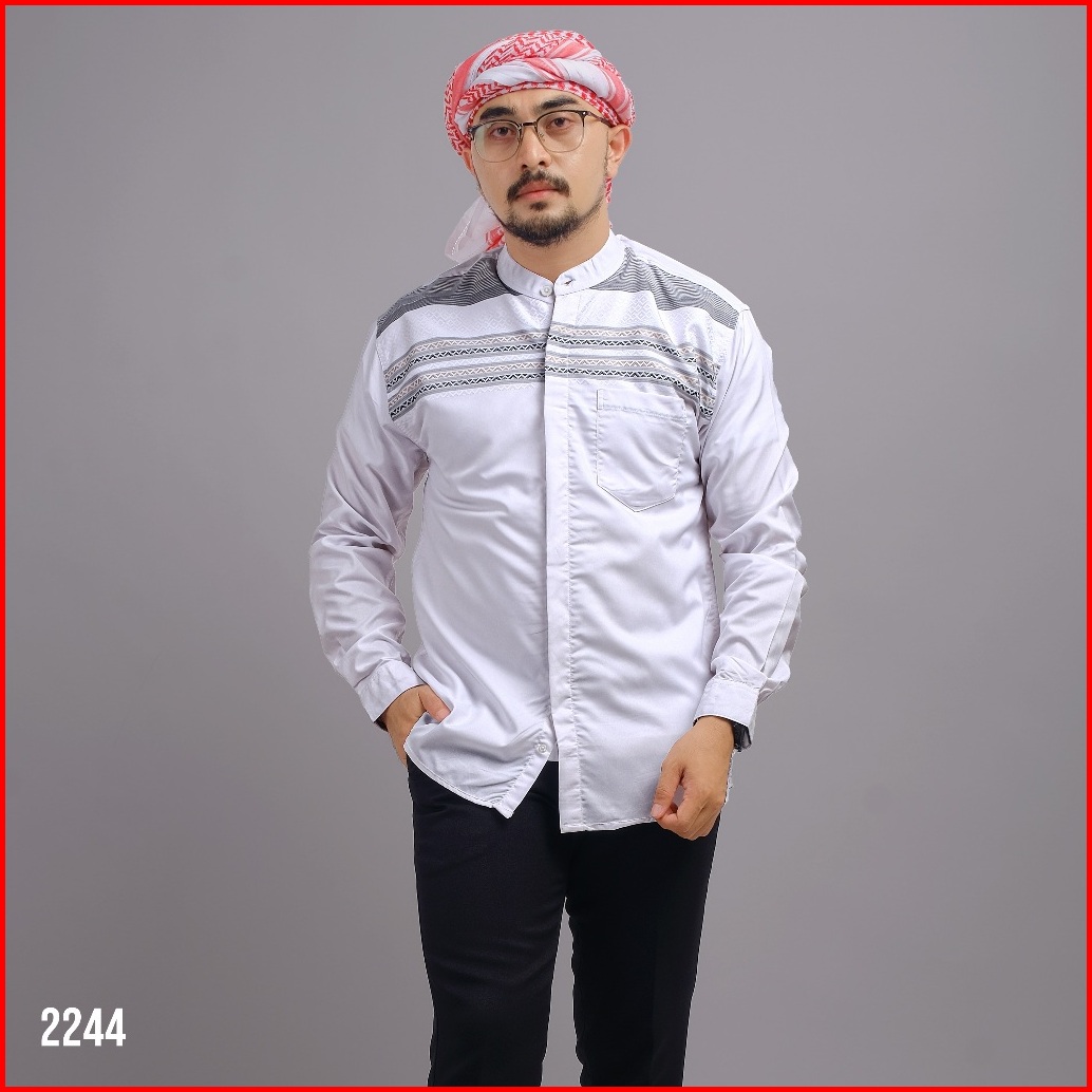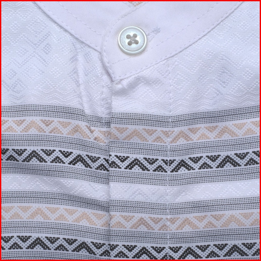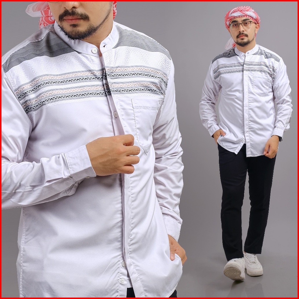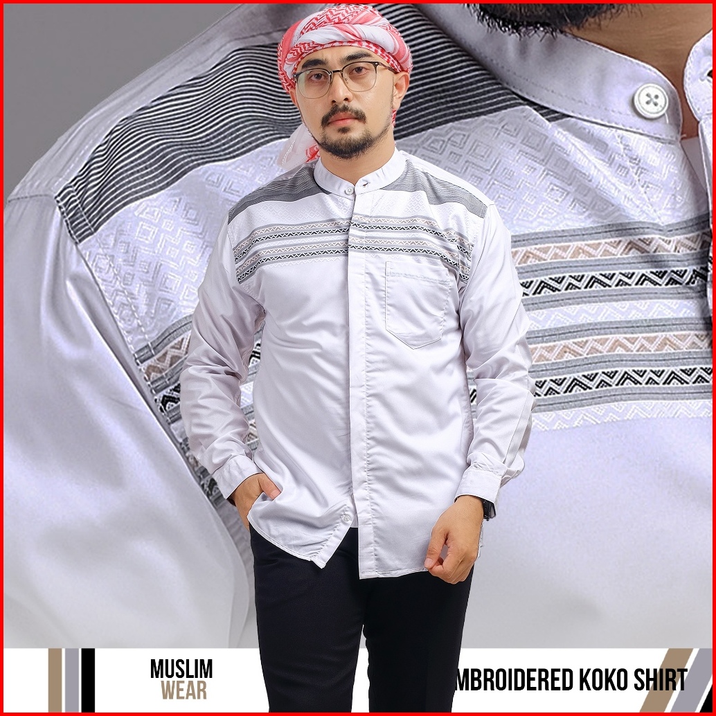 Dgm Kemeja Pria Koko Putih Bordir Lengan Panjang Motif Chevron 2244