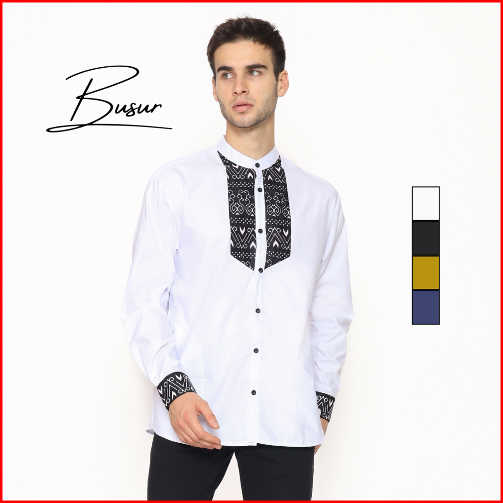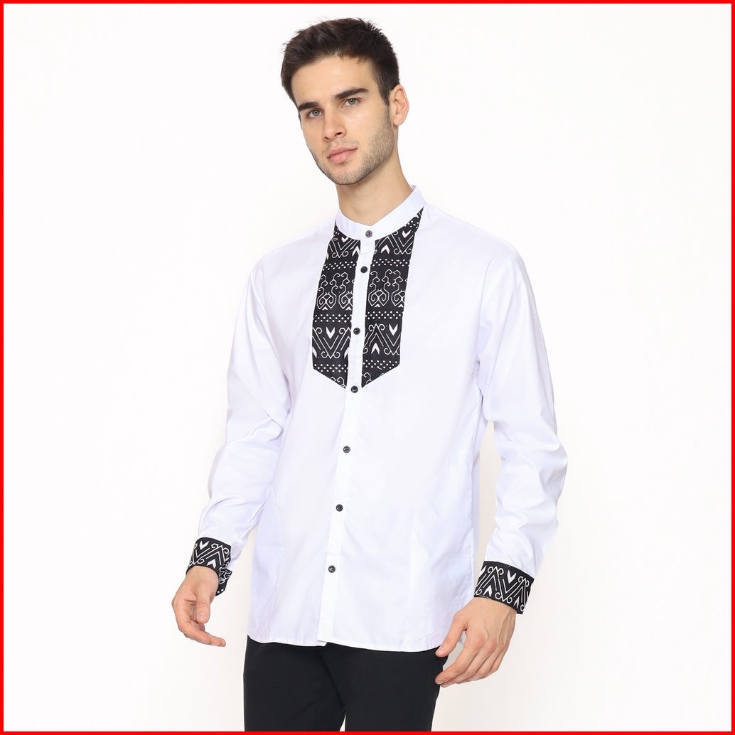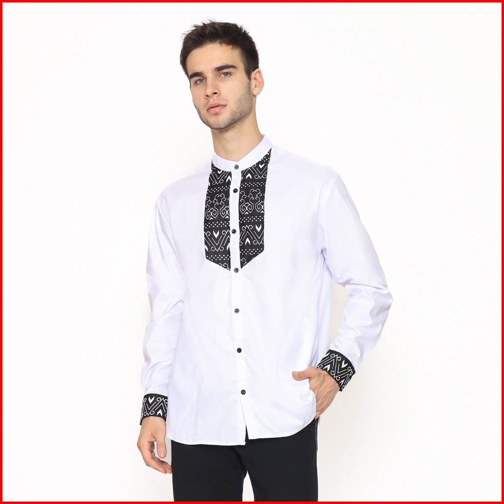 Alawi - Baju Koko Pria Muslim Lengan Panjang Motif Busur Putih Kombinasi Hadroh Azzahir M L Xl