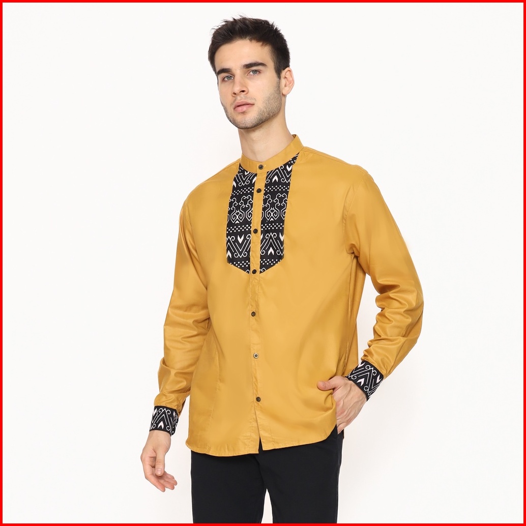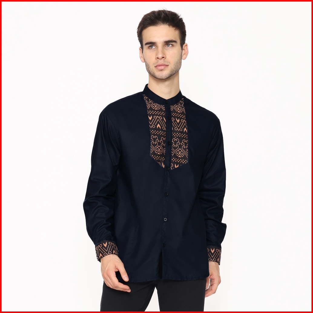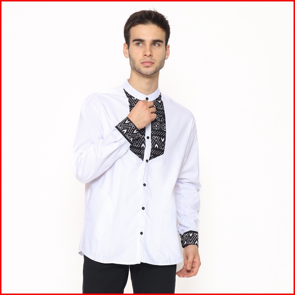 Alawi - Baju Koko Pria Muslim Lengan Panjang Motif Busur Putih Kombinasi Hadroh Azzahir M L Xl
