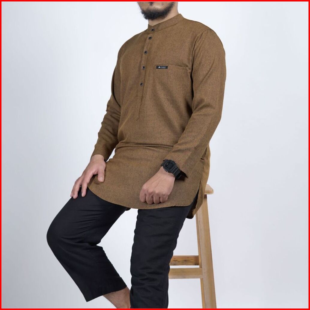 Khoirummah Koko Kurta Makkah - Baju Muslim Pria Dewasa Polos Lengan Panjang - Mocca