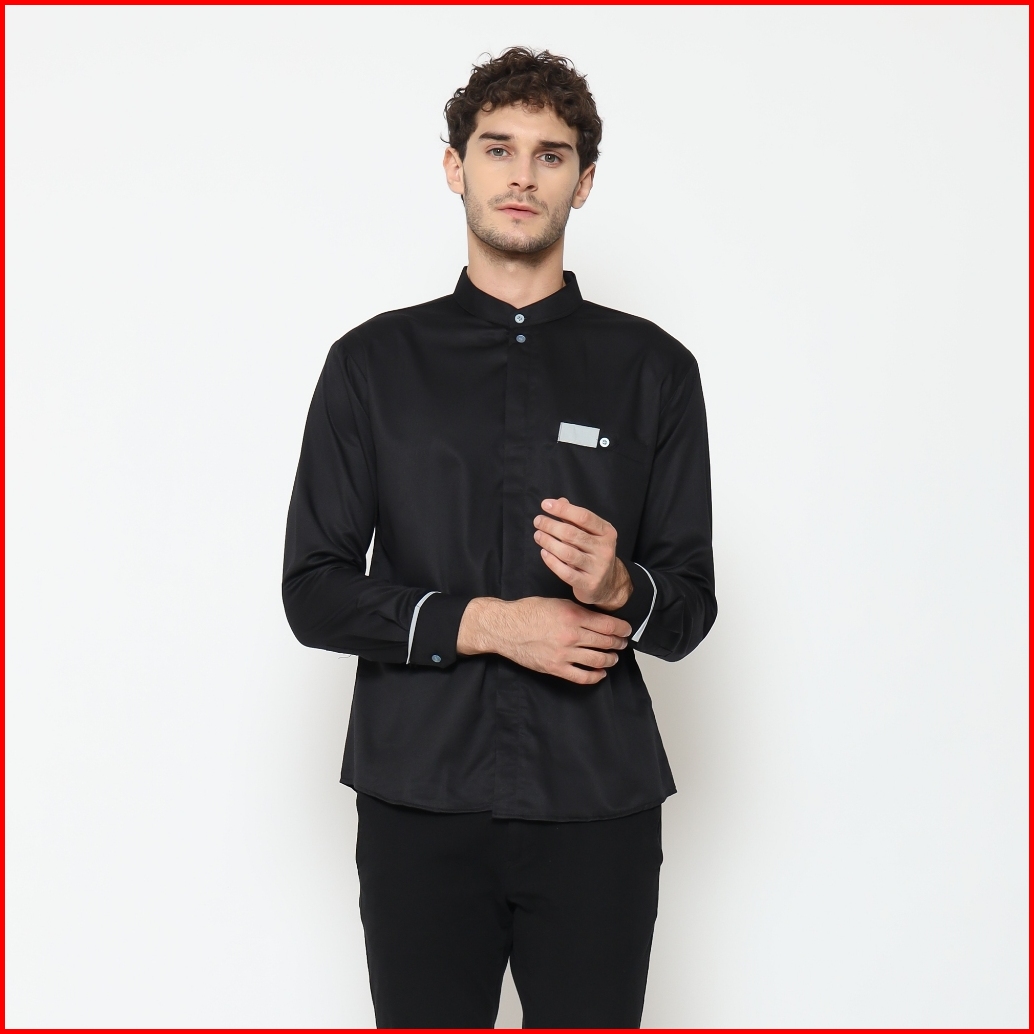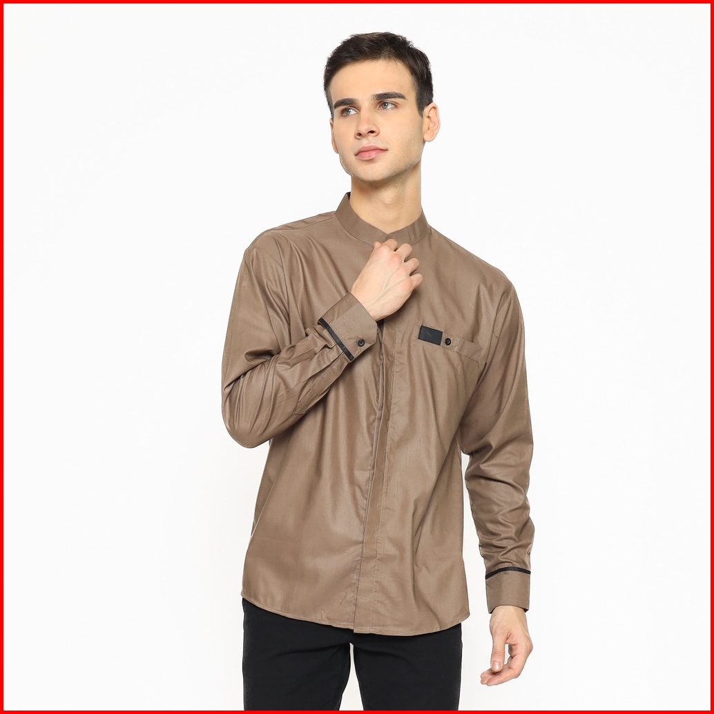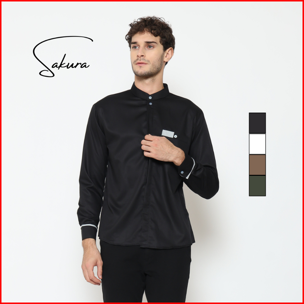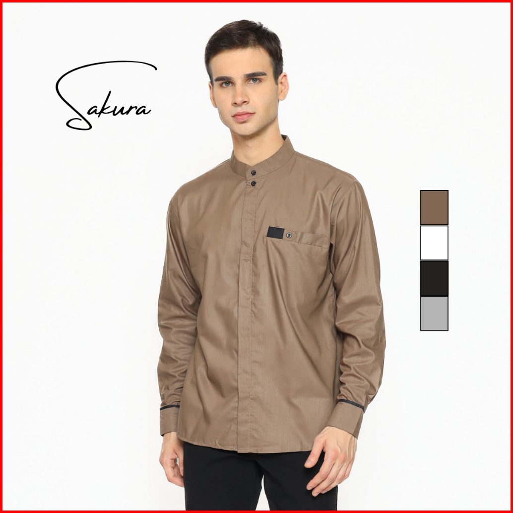 Alawi - Baju Koko Pria Lengan Panjang Motif Sakura Warna Coksu M L Xl
