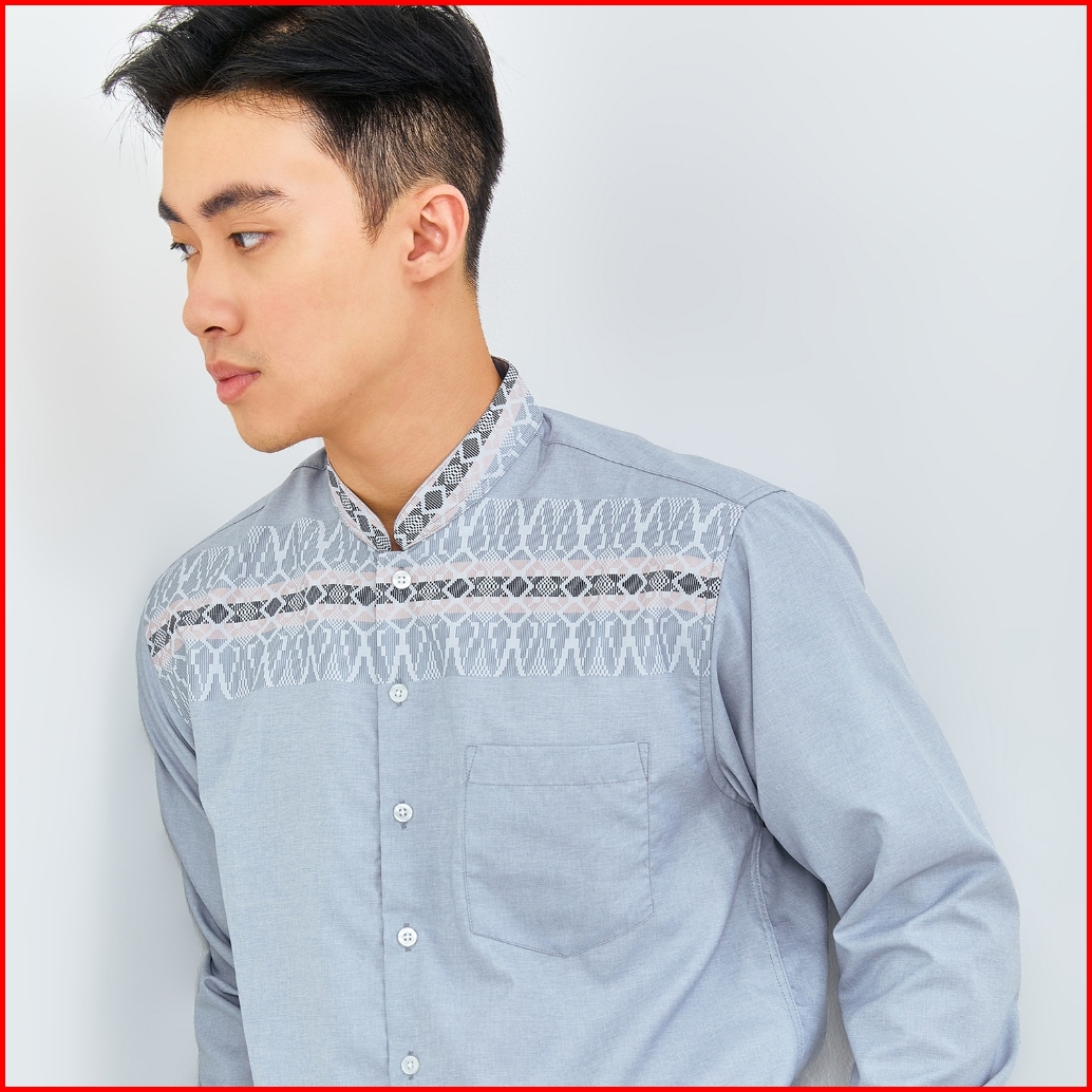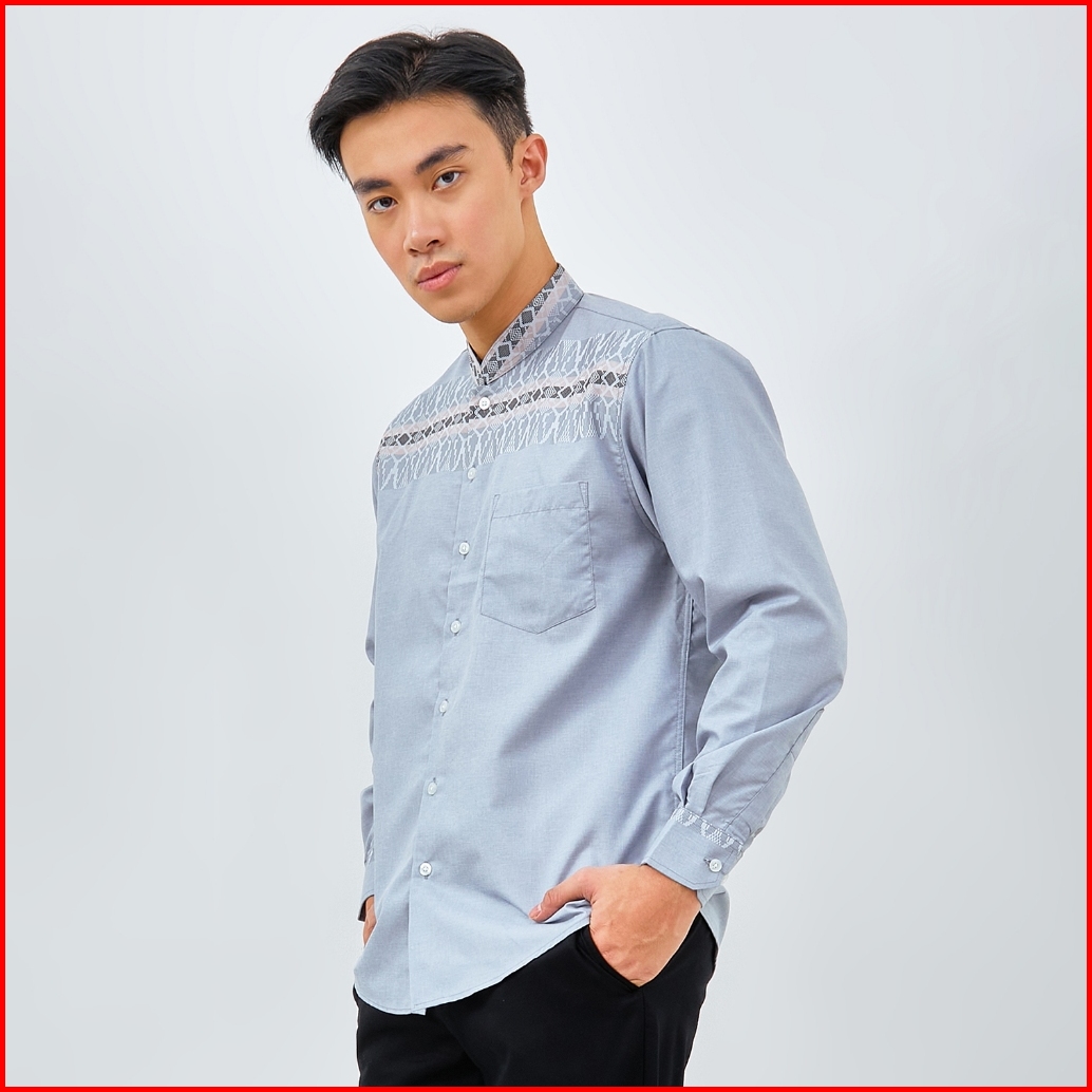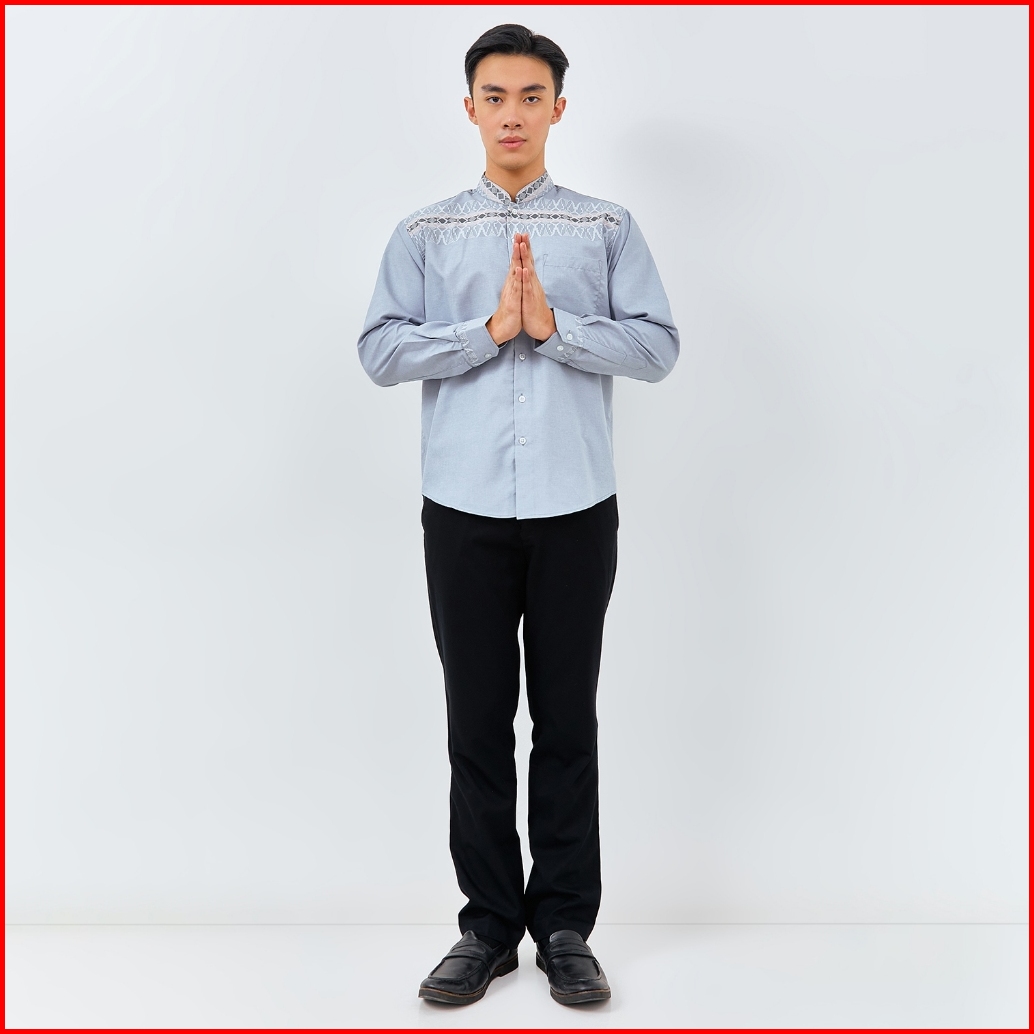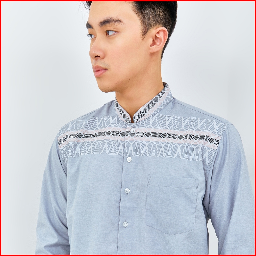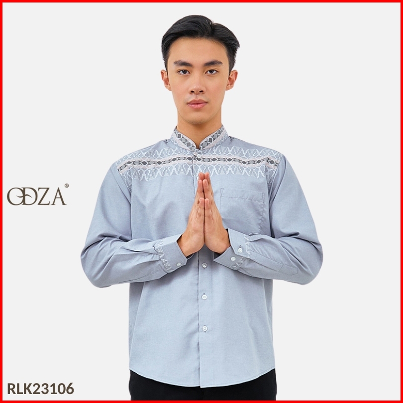 Odza Baju Koko Regular Fit Kemeja Muslim Lengan Panjang Pria Aroka Dusty Blue