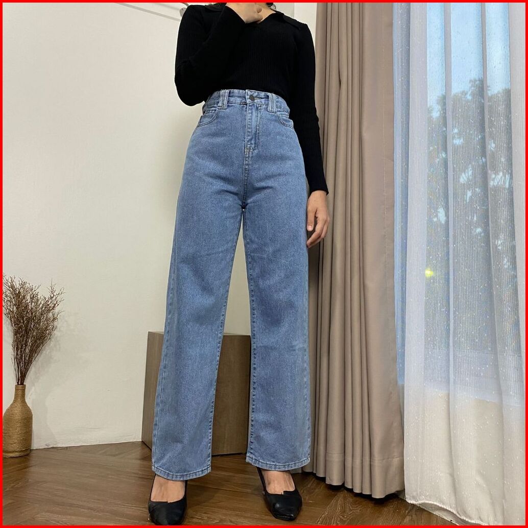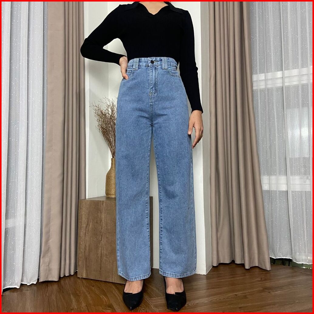 Shenel Celana Jeans Wanita Highwaist J009 Kulot High Waist Jeans Biru Denim Lembut Jins Highwaist Cewek Celana Kulot Jea