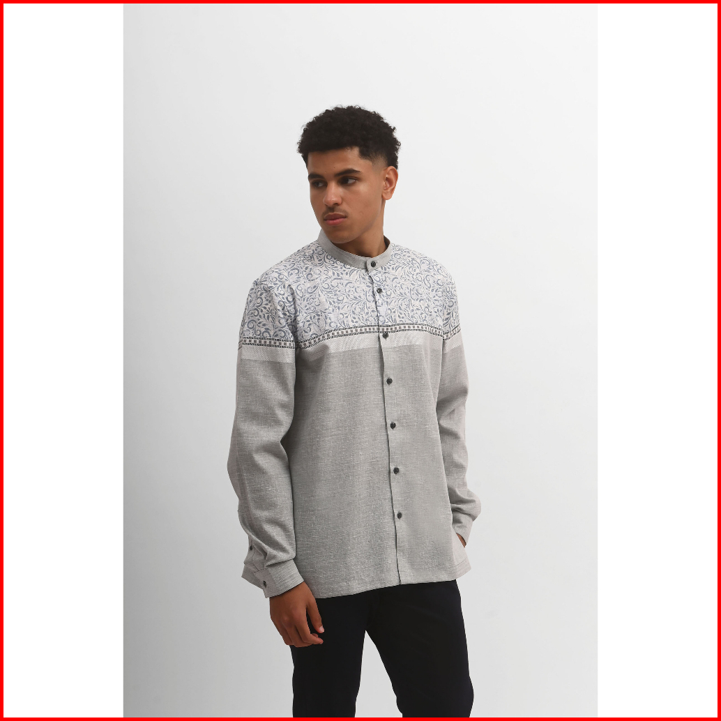 Manzone Kemeja Koko Lengan Panjang Pria Adnan - Grey