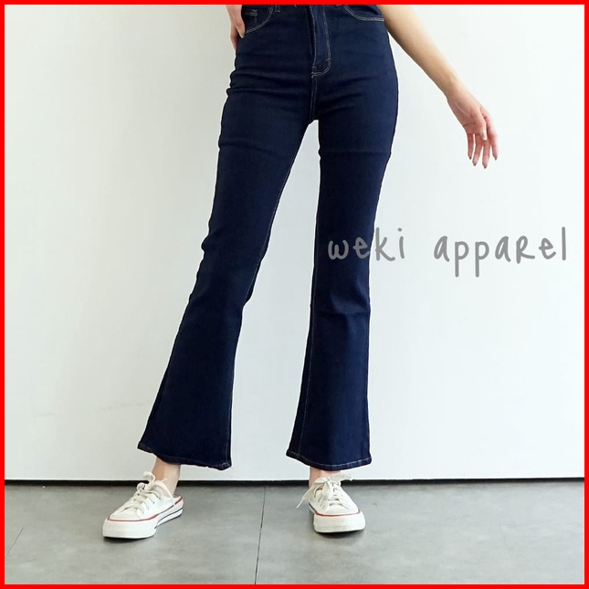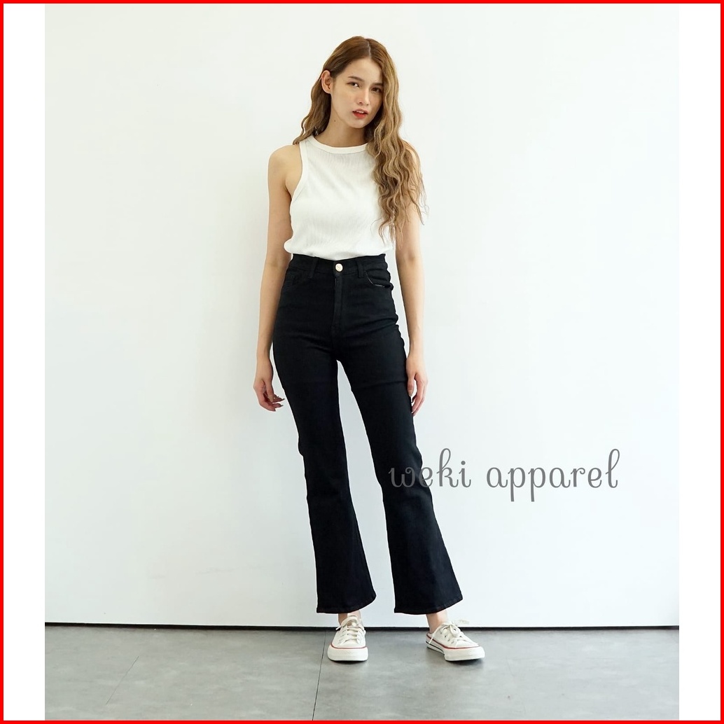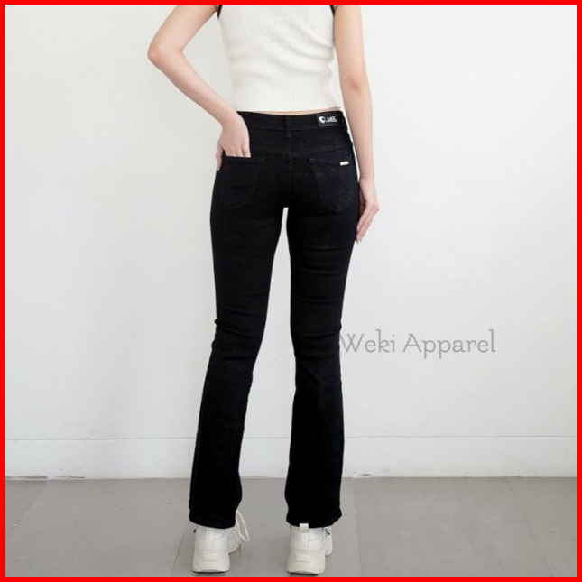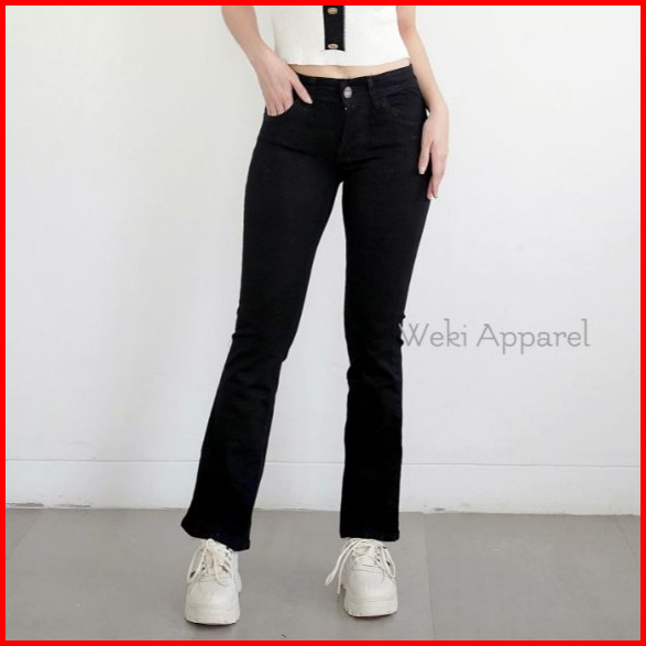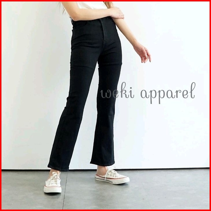 Celana Jeans Cutbray Strech Black Wanita Highwaist Weki Apparel