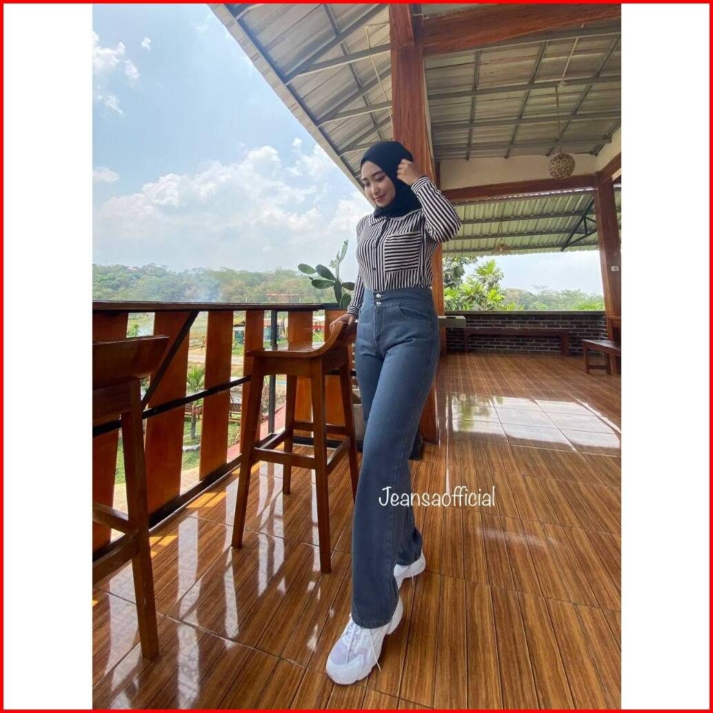 Celana Panjang Wanita Highwaist Jeans J23 Korean Denim