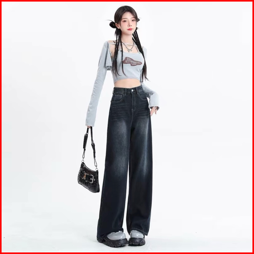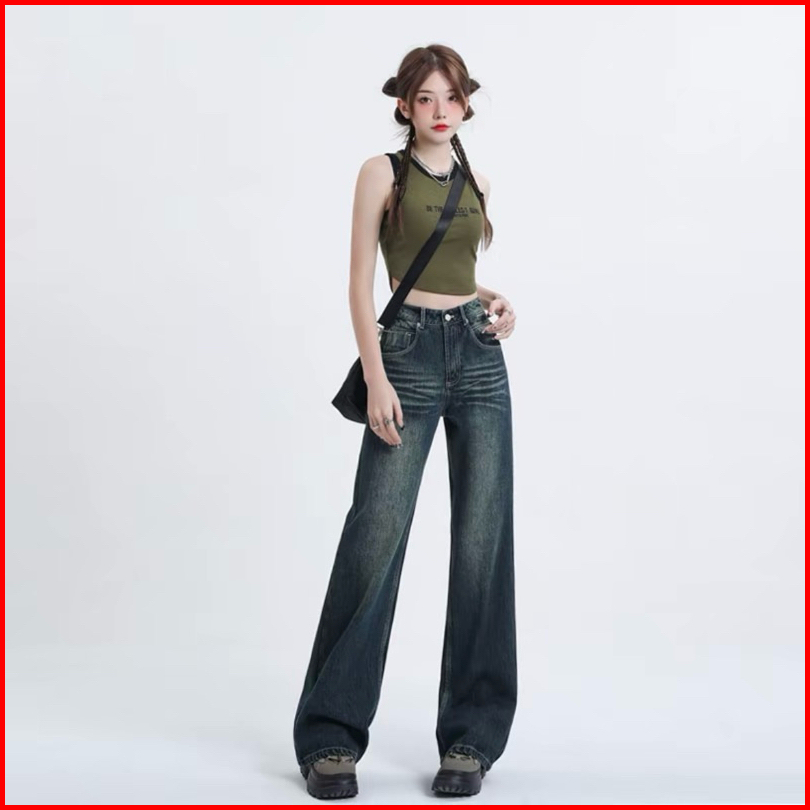 Celana Jeans Wanita Biru Retro Highwaist Loose Jeans Korean Skena Style Premium Denim Retro Kekinian