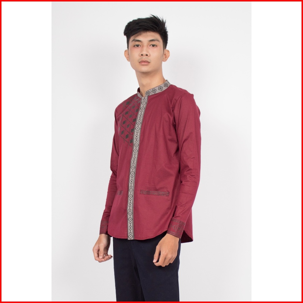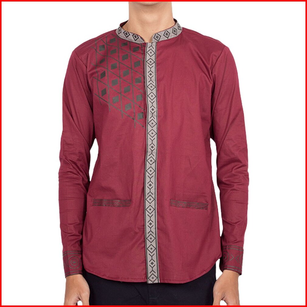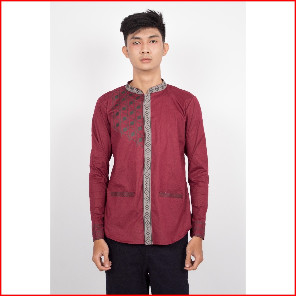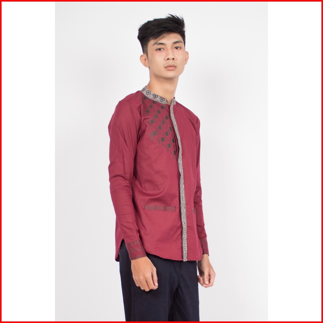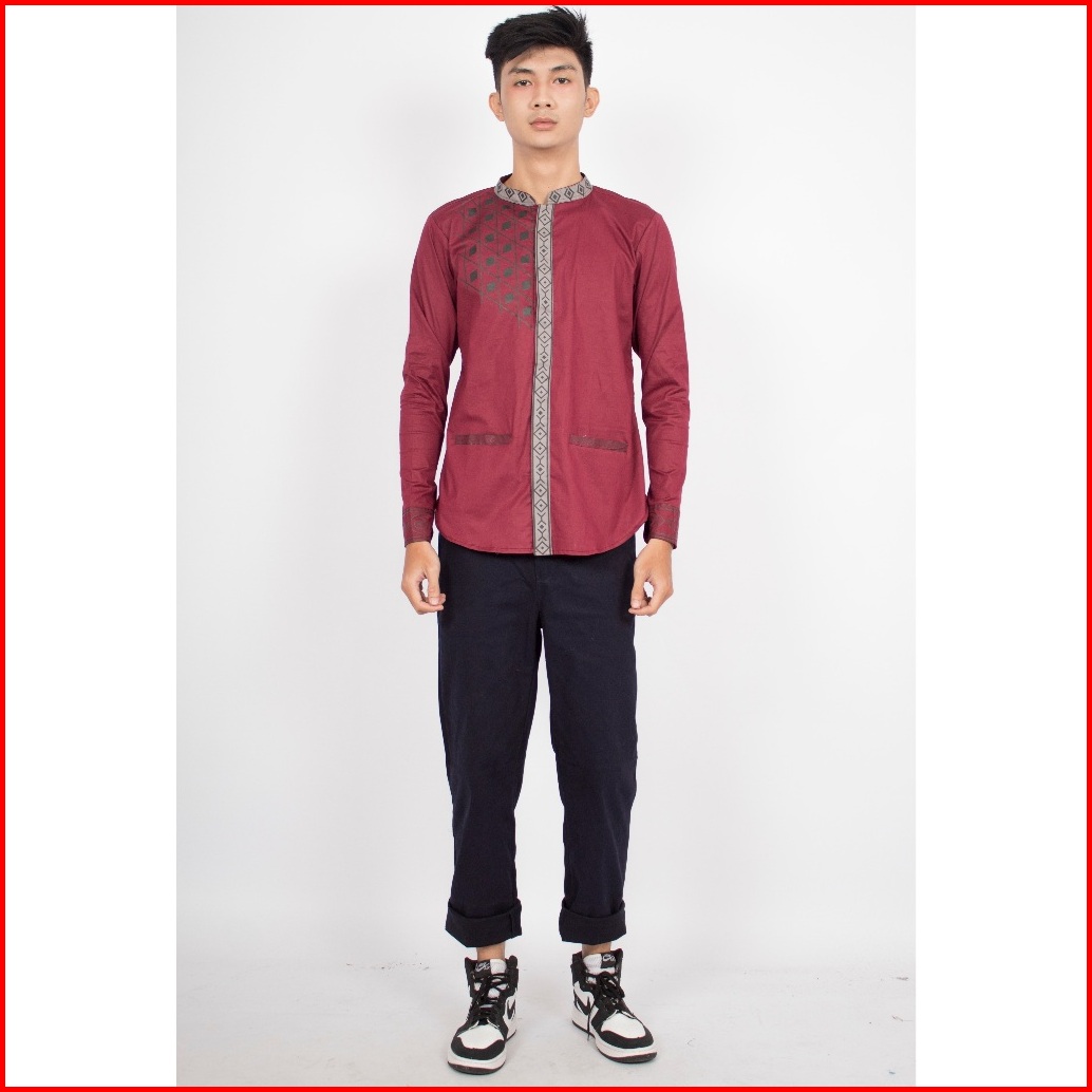 Fortklass Ezra Kemeja Koko Pria Lengan Panjang Baju Koko Kemeja Tangan Panjang Lebaran Koko Idul Fitri Sablon Motif Sila