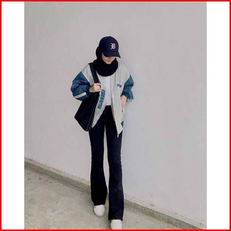 Highawist Cutbray Loose Jumbo Jeans Wanita Stretch