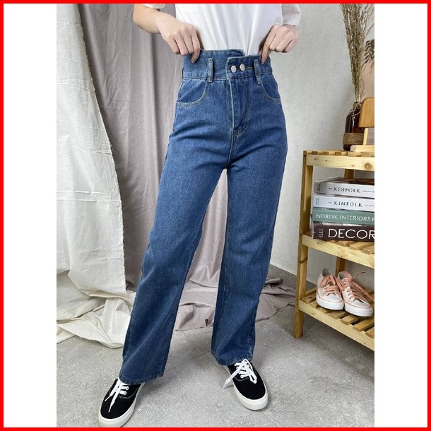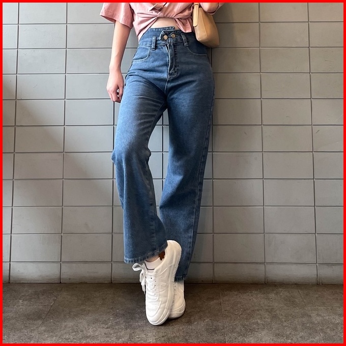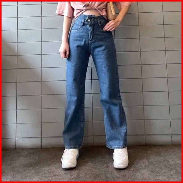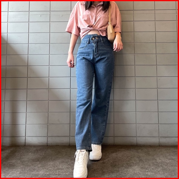 Thome X51 Celana Panjang Jeans Straight Jeans Highwaist Baggy Jeans Wanita Kekinian