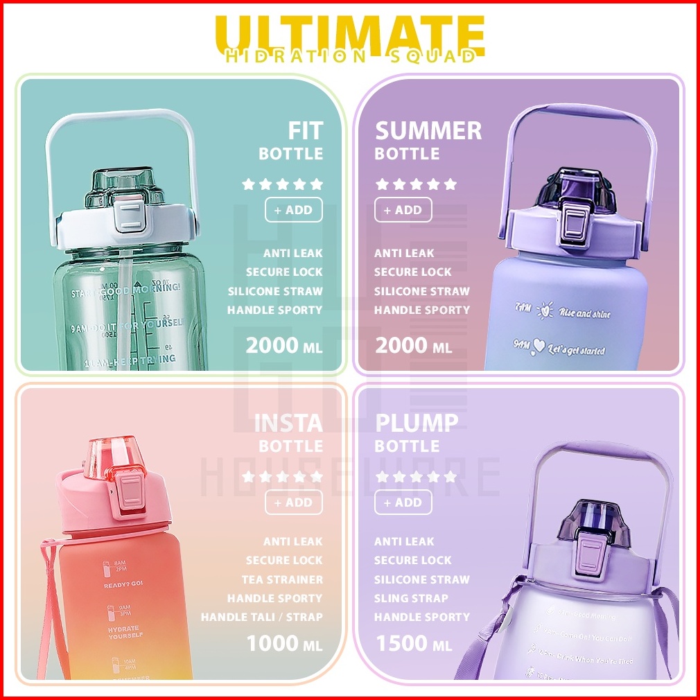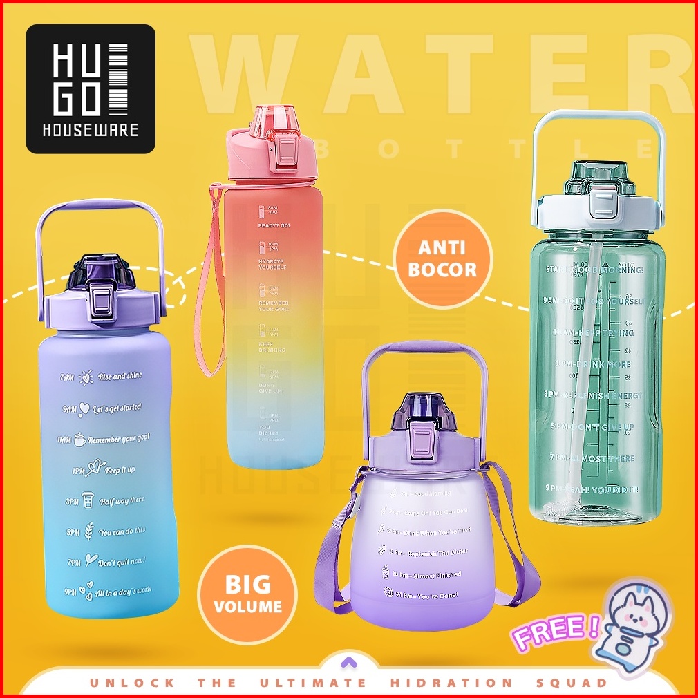 Hugo Botol Minum Motivasi Viral Botol Tempat Air Minum Premium Quality 1000ml 1200ml 1500ml 1800ml 2000ml Free Stiker