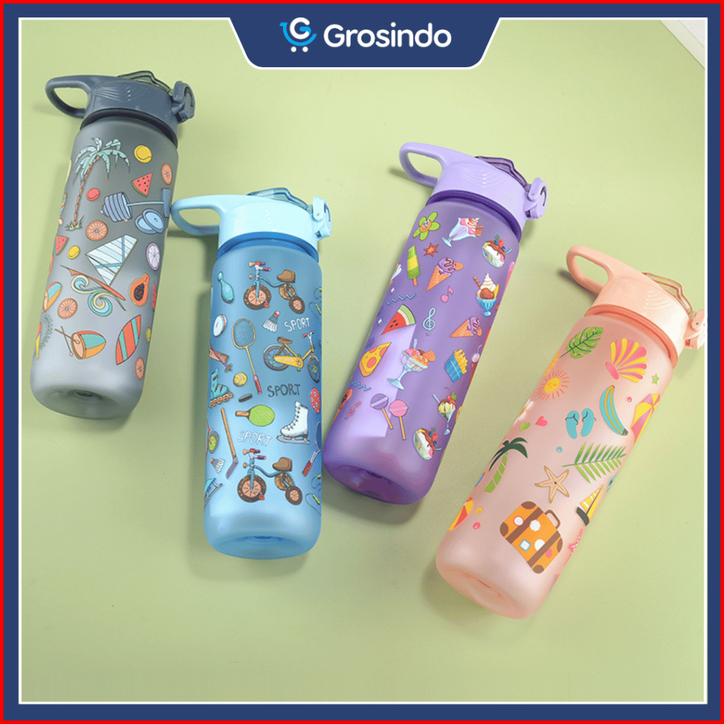 Grosindo Botol Minum Sport Premium Motif Lucu 700-1000ml Dengan Sedotan Bpa Free