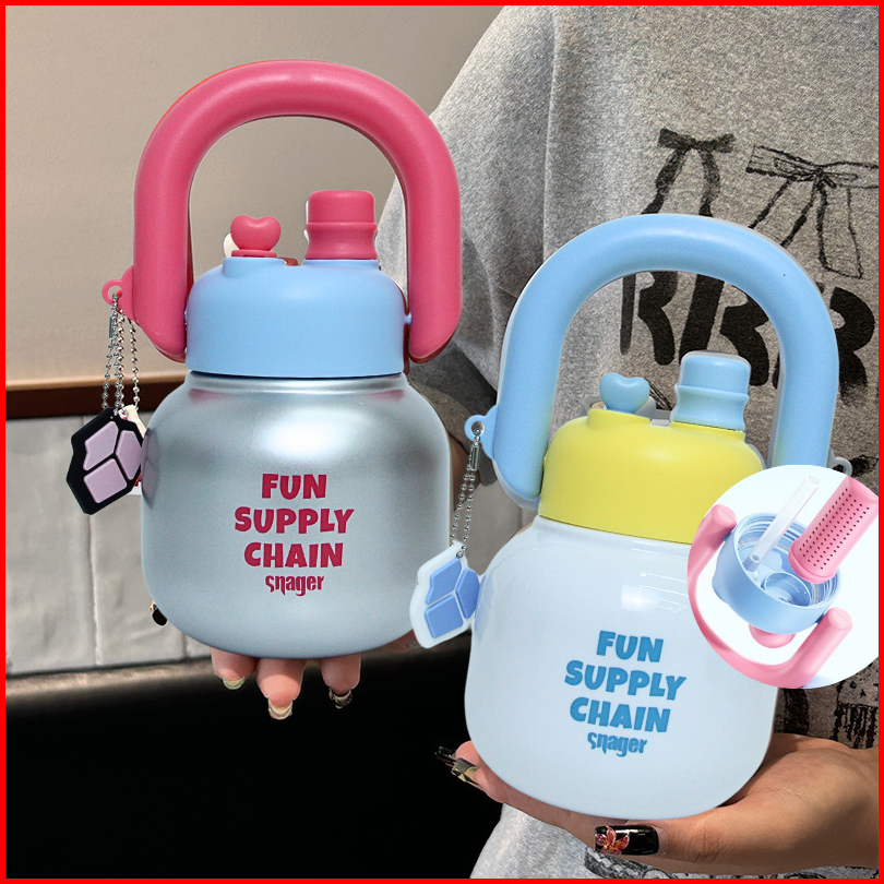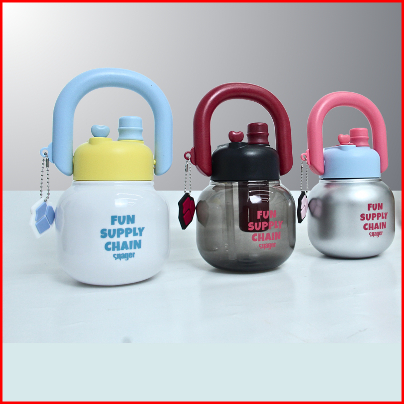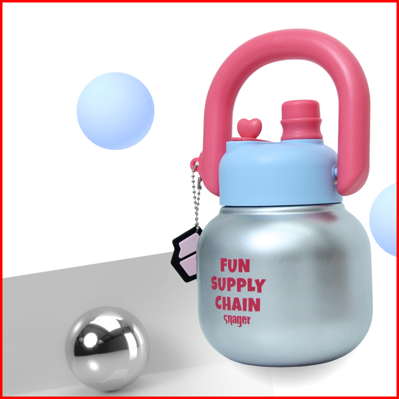 Snager Botol Air Minum Anak Metalik Bulat Panda Tritan Dua Cara Minum Linlin Aesthetic Import Bt06 800ml