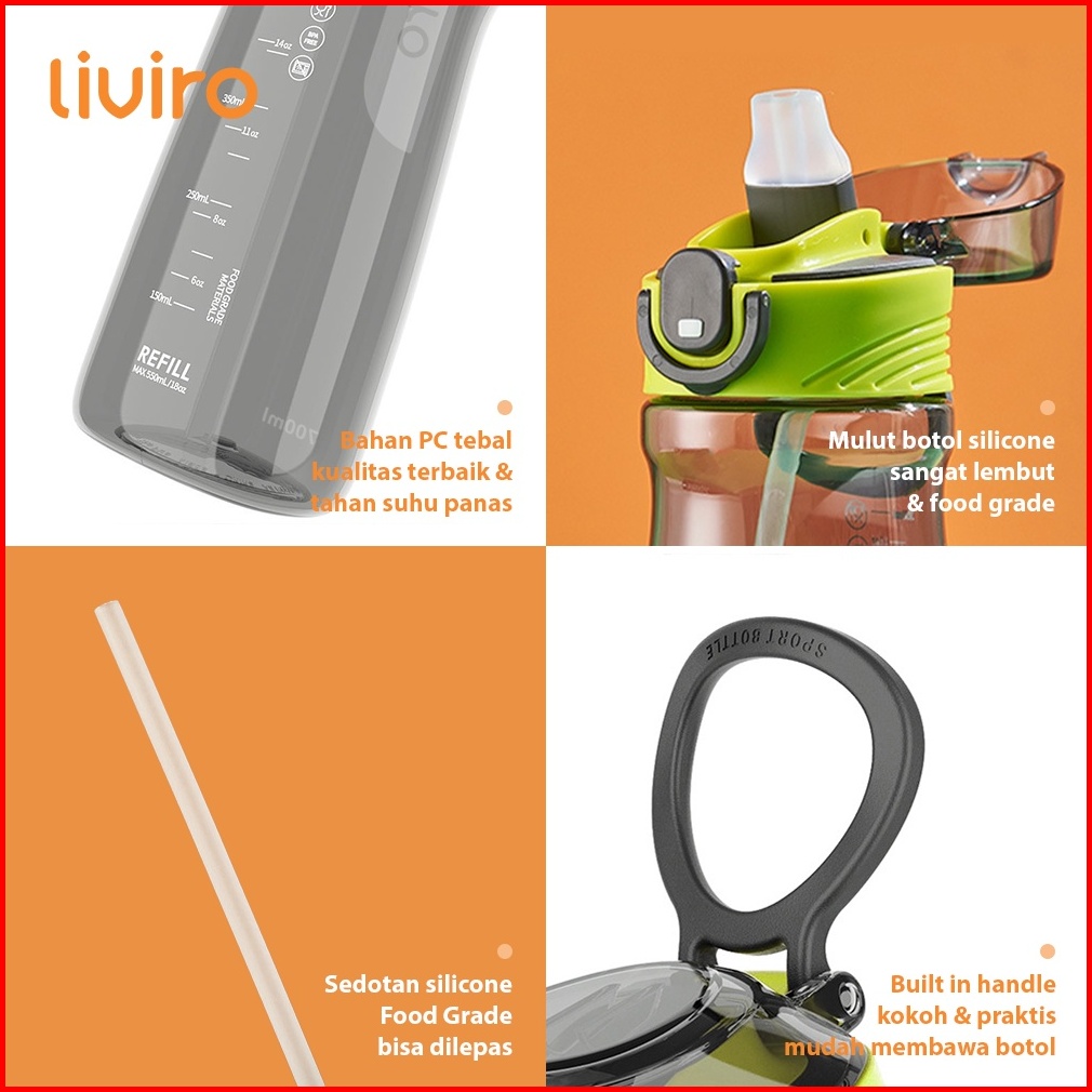 Liviro Botol Minum Toff 700 Ml Botol Air Minimalis Sporty Premium Silicone Straw