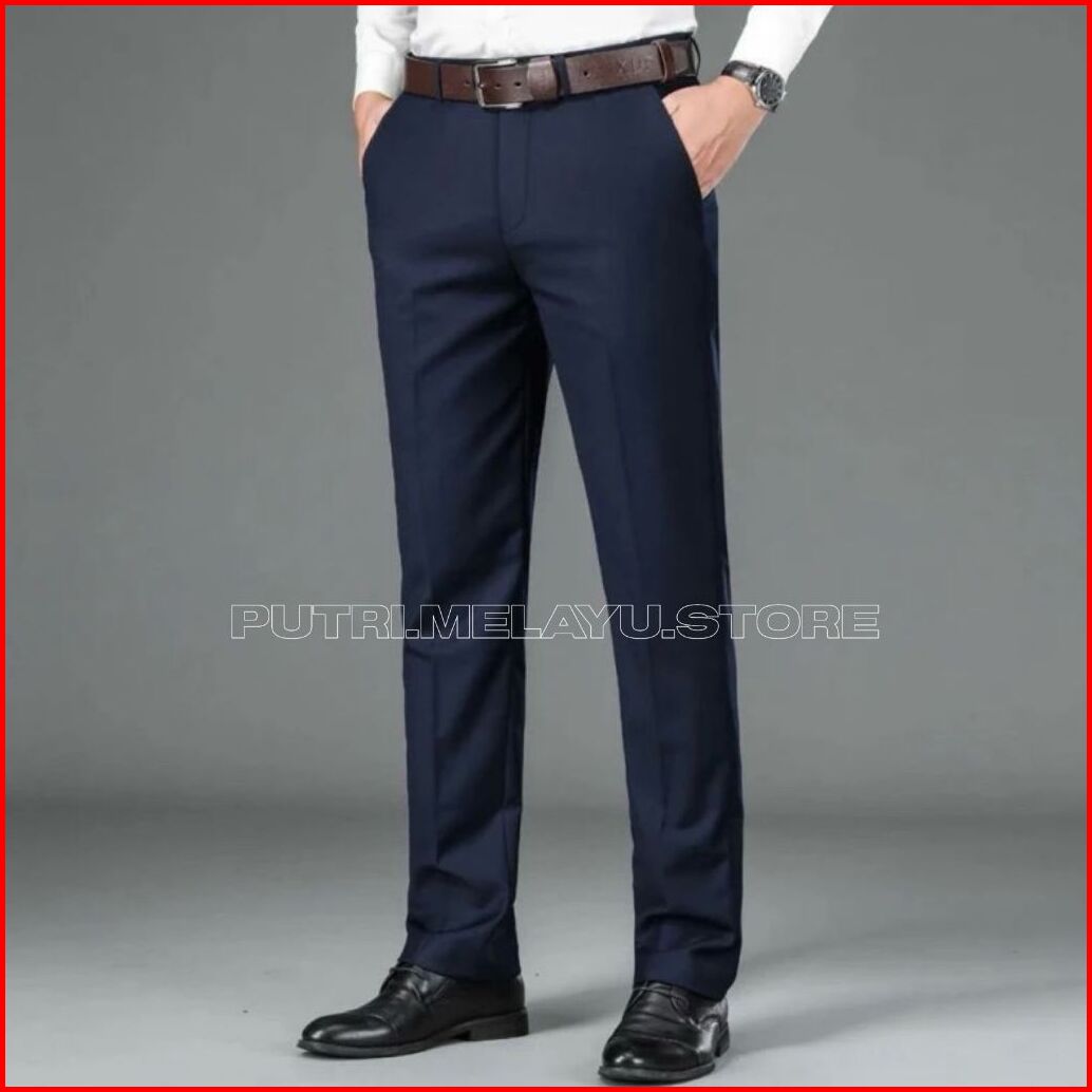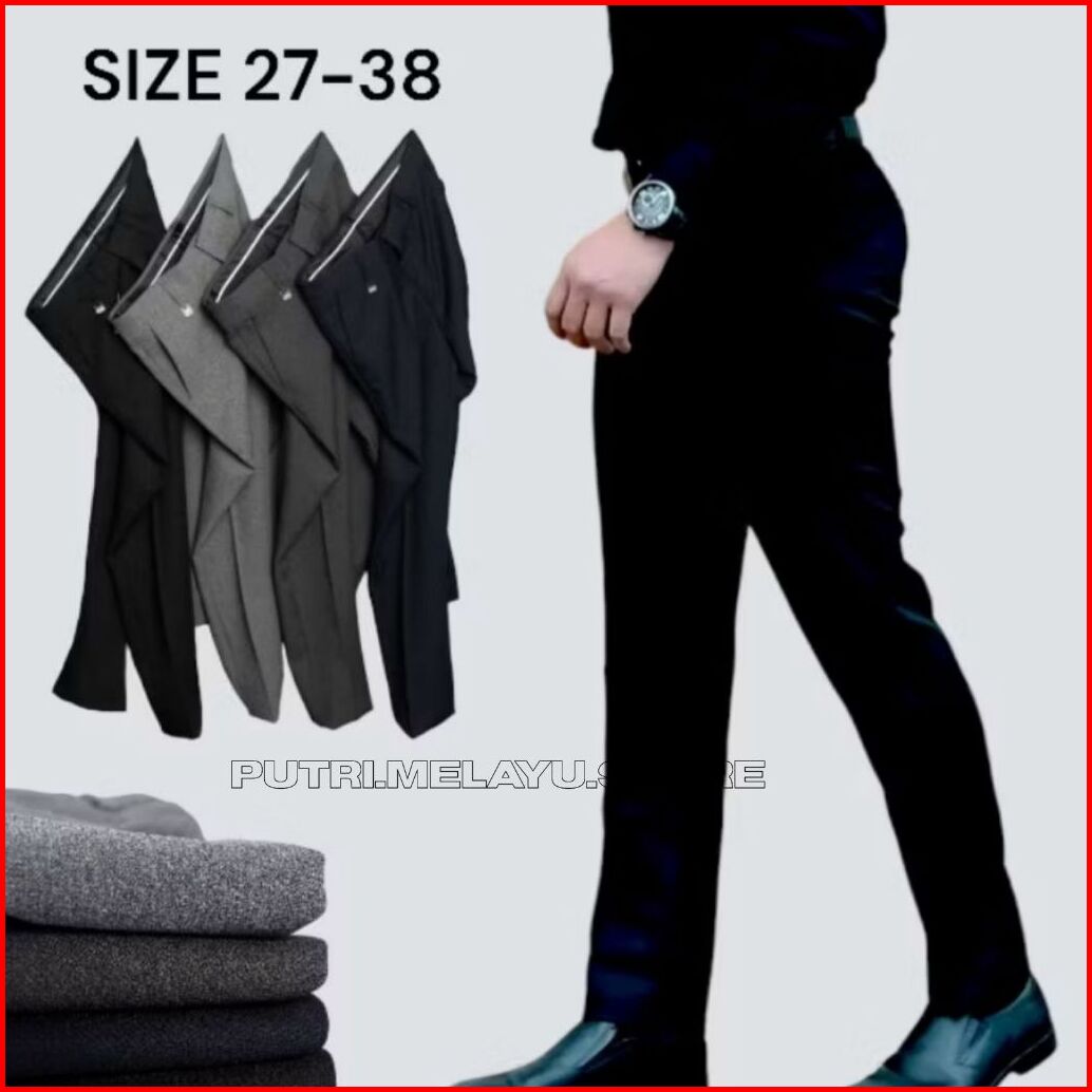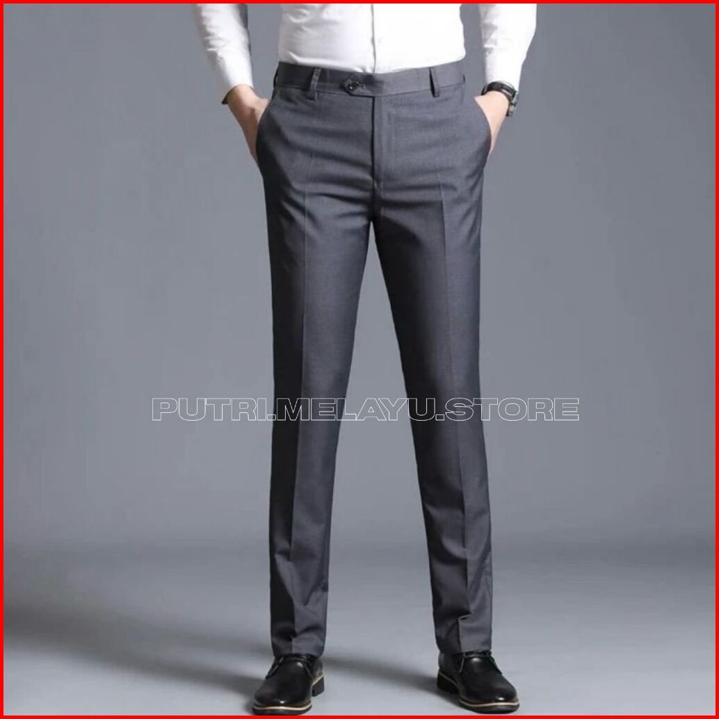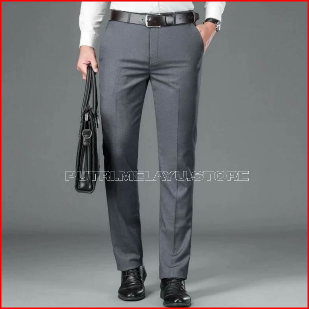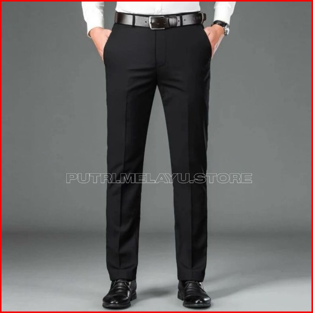 Celana Bahan Kerja Formal Kantor Panjang Hitam Dasar Pria Slimfit Cod1